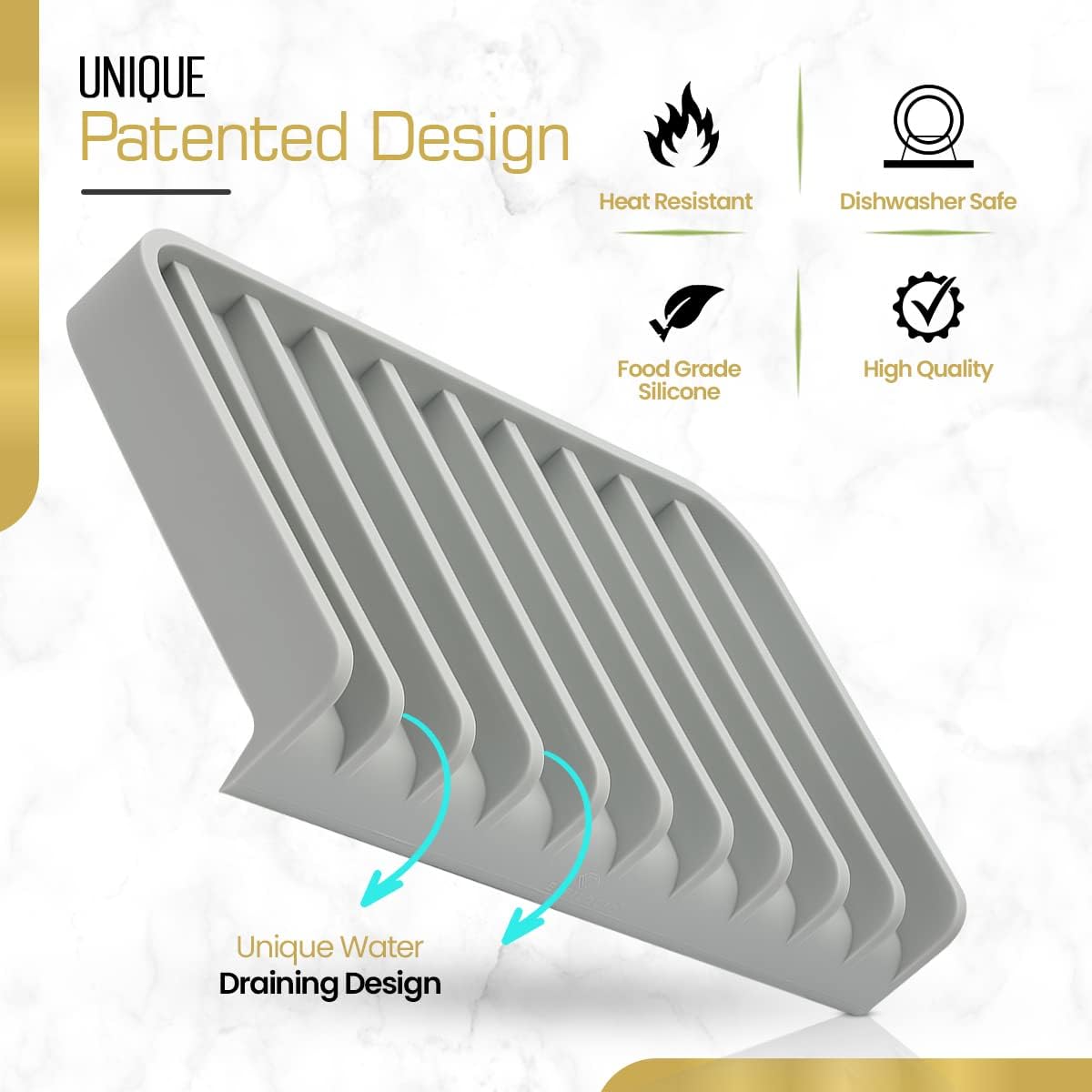 - ✅ FOOD SAFE FLEXIBLE SILICONE AND DESIGNED FOR UNDERMOUNT SINKS: This Kitchen soap tray is made of heat resistant, dishwasher proof (-40°F to 390°F), flexible silicone material which is BPA free. Sponge holder is thick and durable. It can be used as a silicone drying mat for kitchen counter. Dry all your day to day items such as fruits, vegetables, utensils, soap bottles , soap dispenser, sponges, and more. This sink tray comes in 3 great colors Gray, White and Black