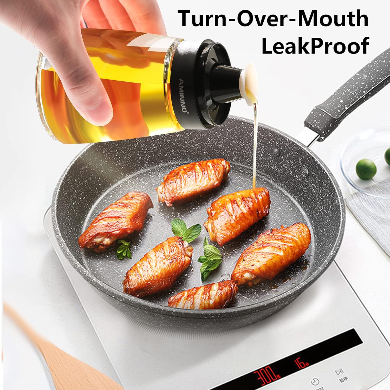 - 【Airtight Lid - Leakproof - Drip Free Spouts】These oil dispenser bottles come with clear airtight lids. The cruets bottle will be no leak even if stand upside down when close the lid. And the drip-free spouts will never stain bottle-body and kitchen countertop, enjoy clear aways