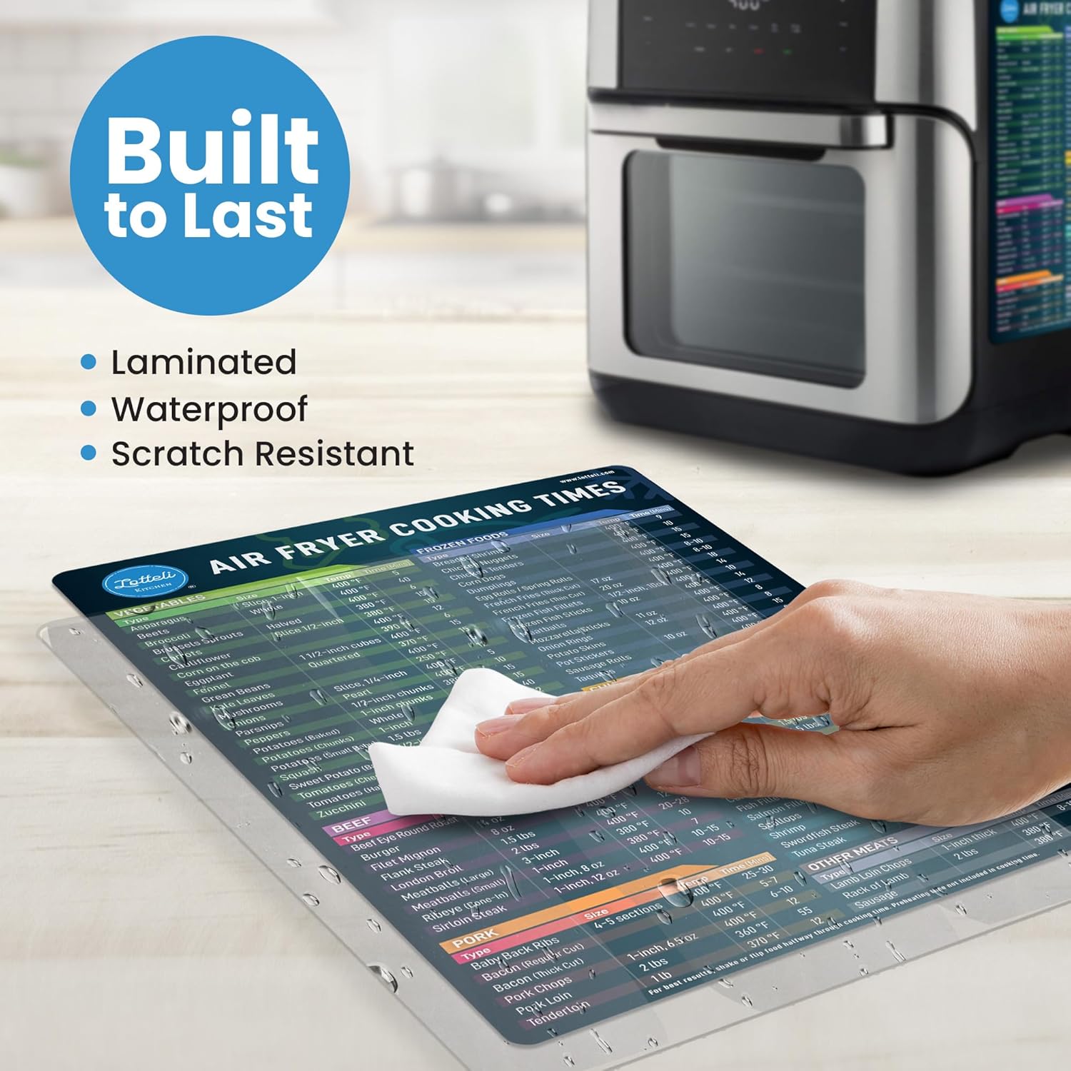 - PERFECT HOUSEWARMING GIFT: Presented in attractive packaging, our air fryer cheat sheet magnet is a thoughtful gift for anyone who loves to cook. Perfect for anyone, Lotteli makes cooking easier and more enjoyable for both experienced chefs and beginners alike.