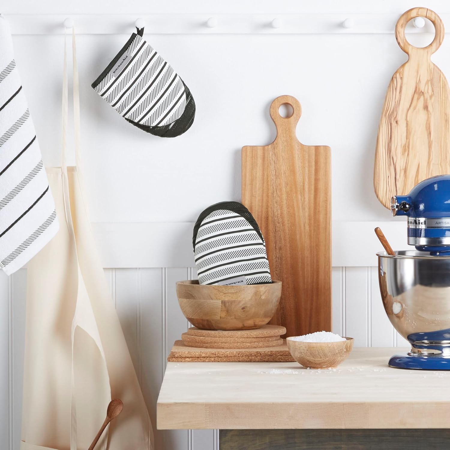 - SET OF TWO: Shield your hands while handling hot cookware. This set includes two (2) KitchenAid Albany Mini Mitts, each measuring 5.5" W x 8" L.