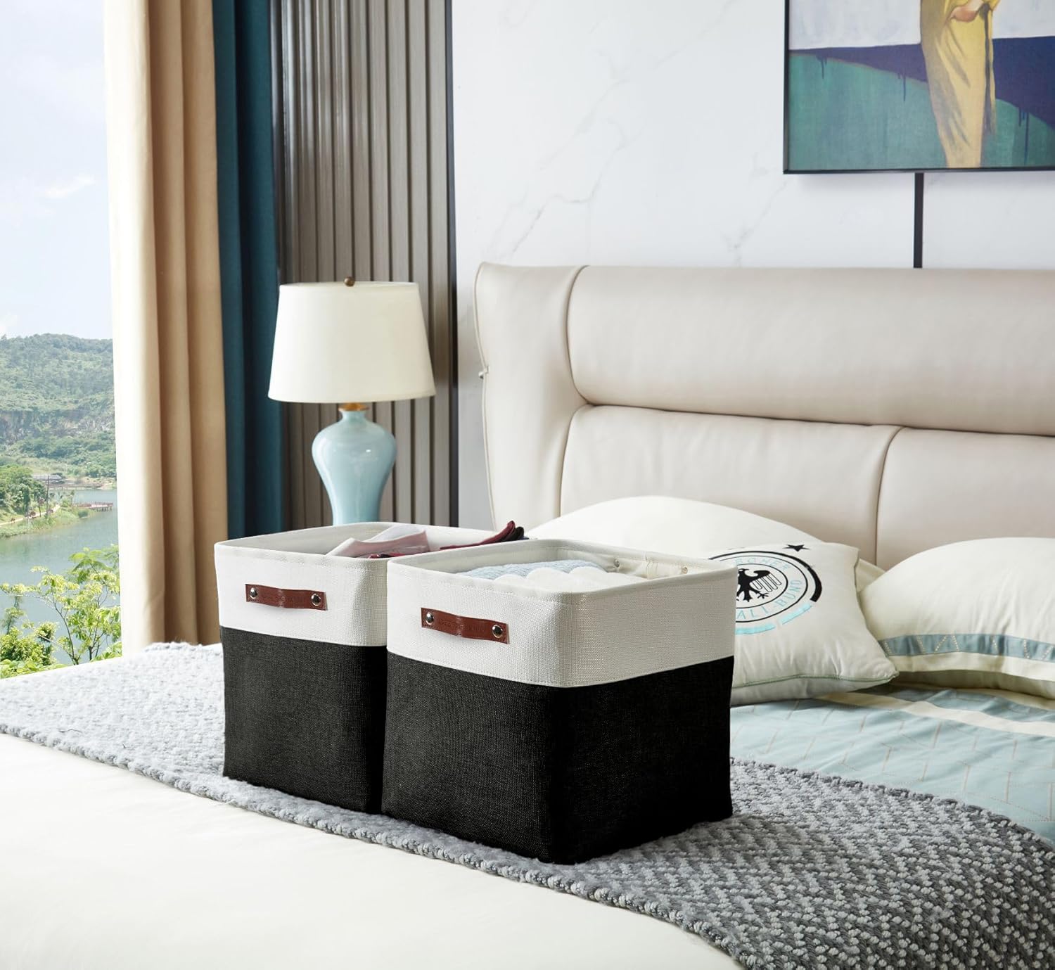 DECOMOMO Storage Cubes, 11x11 Cube Storage Bins, Baskets for Shelves (Black & White, Cube 11" - 4 Pack)