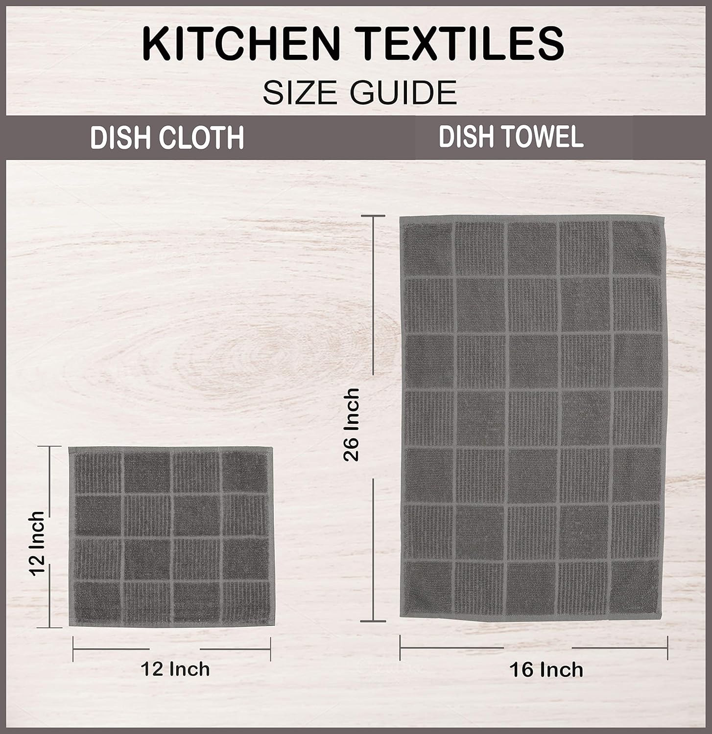 - SIZE : Each towel in this set measures 12" x 12" and comes in a soothing grey color, adding a touch of elegance to your kitchen decor. The terry cloth construction ensures a plush feel against your hands while effectively absorbing moisture, making them perfect for drying dishes, glassware, and countertops with ease.