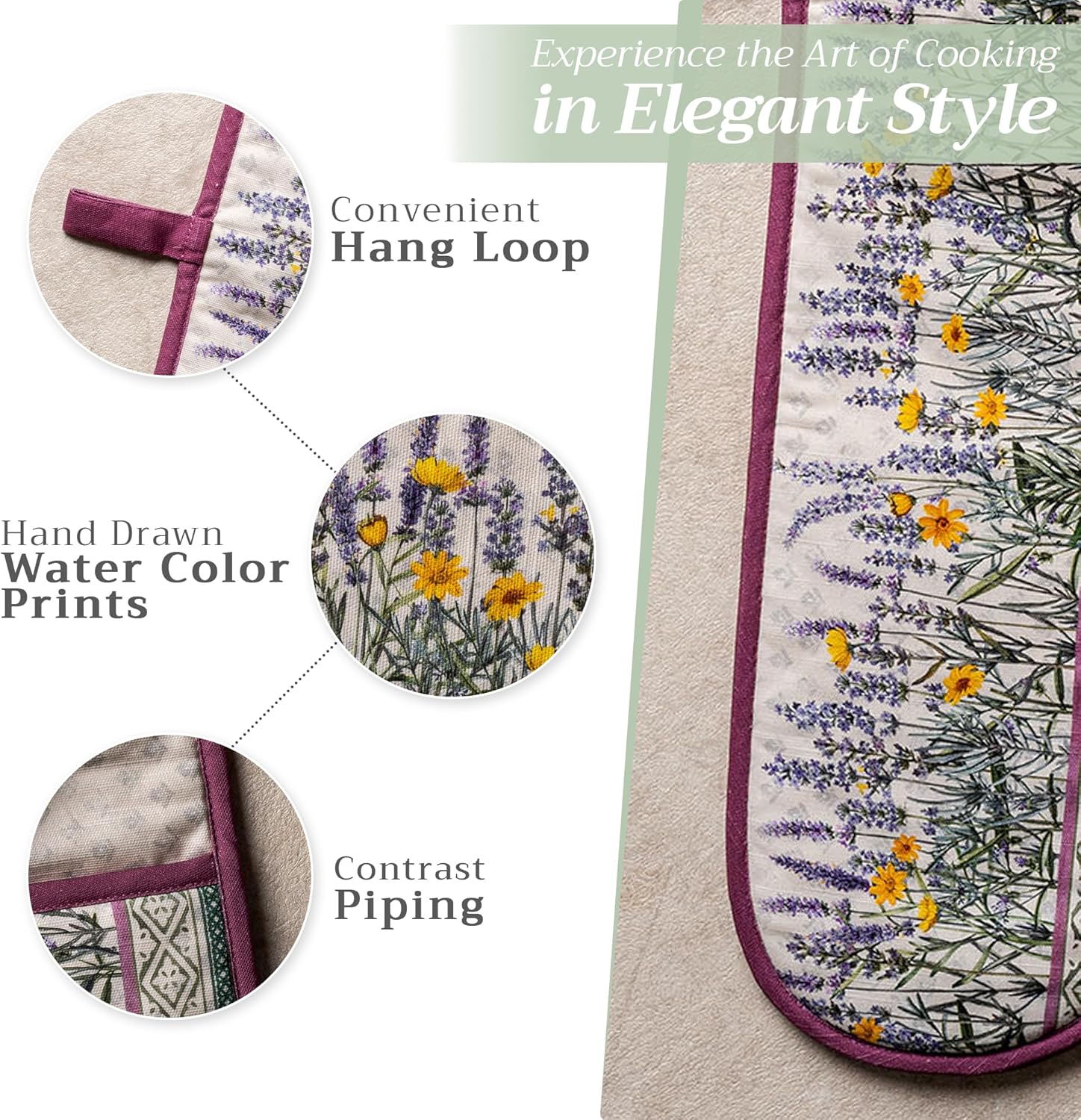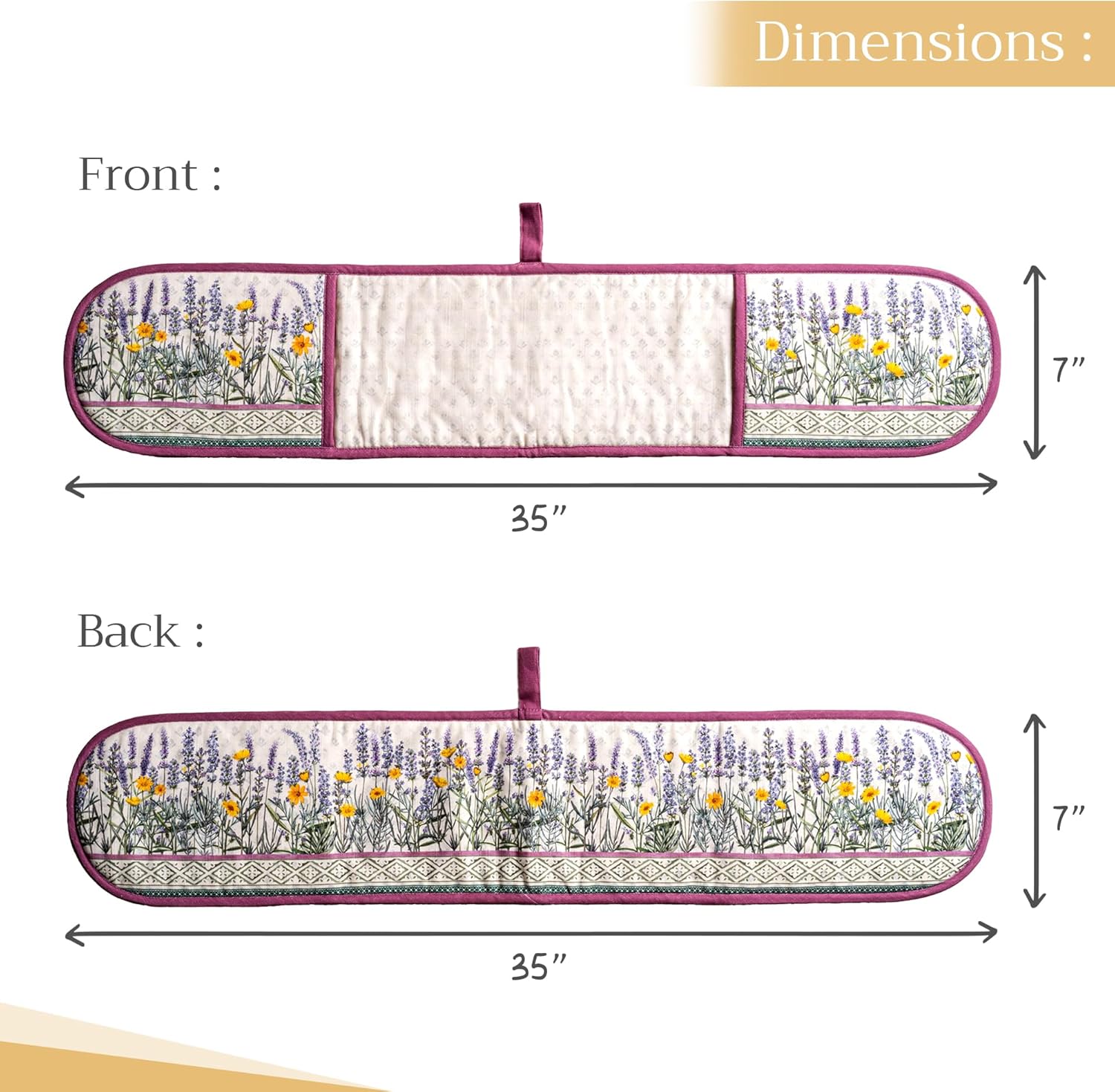 - Package includes: Includes 1 double oven mitt sized 7"x35". Perfect for handling hot cookware safely while adding a touch of European elegance to your kitchen. Designed in Europe and made in India with care