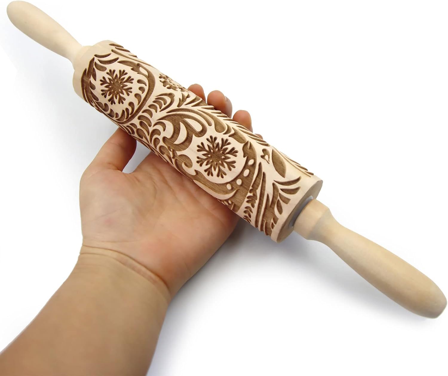- 【Perfect Gift】 Rolling pins can be a really nice pretty gift for your friends, kids and your kitchen. Embossed rolling pins is a great Christmas gift for baking enthusiasts.