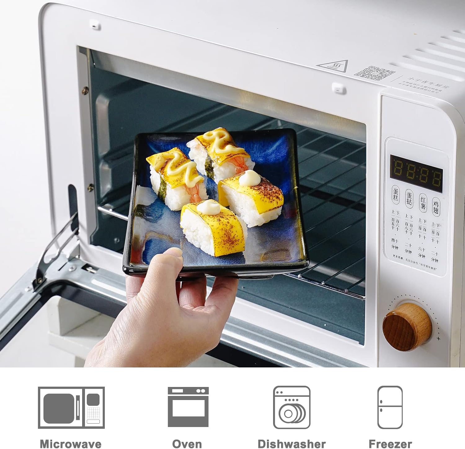 - ăHigh Qualityă: Ceramic sushi plates are made up of high-class quality ceramic which makes them easy to clean, microwave, and dishwasher safe. Perfectly compatible with cold & hot food. Perfectly compatible with cold & hot food. Does not react chemically with food in any way and does not transfer odor, color, or taste.
