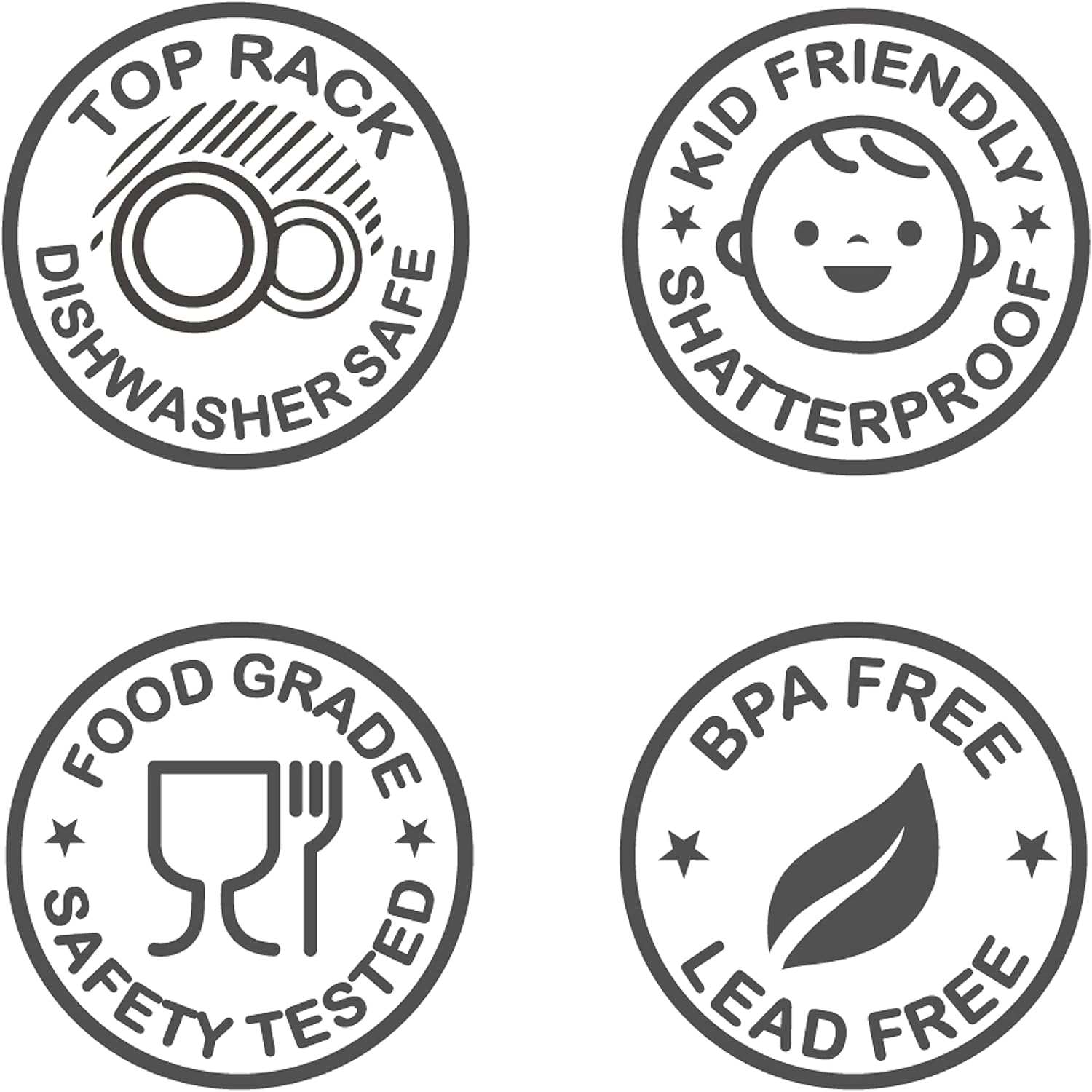 - SHATTERPROOF & DISHWASHER SAFE- Children safe. No worry getting hurt by broken glass. Top rack dishwasher safe. Hand wash recommended. Not airtight. No silicon.