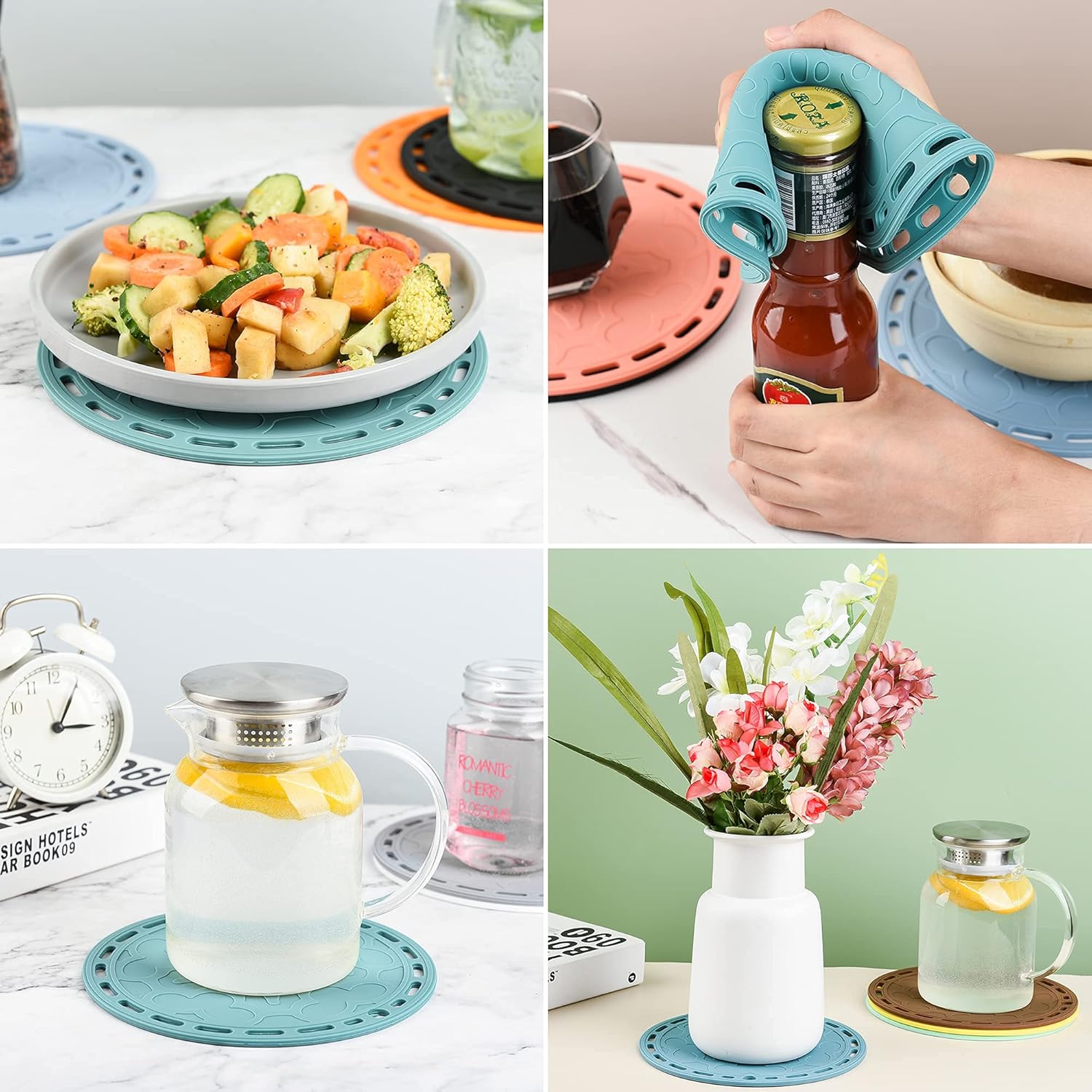 - MULTI FUNCTIONAL TRIVET MATS - Use it as a trivet, hot pad, hot mat,<br> protector,pot holder,jar opener, spoon rest,drying mat or anywhere <br>you need extra grip or exteme heat or cold protection.