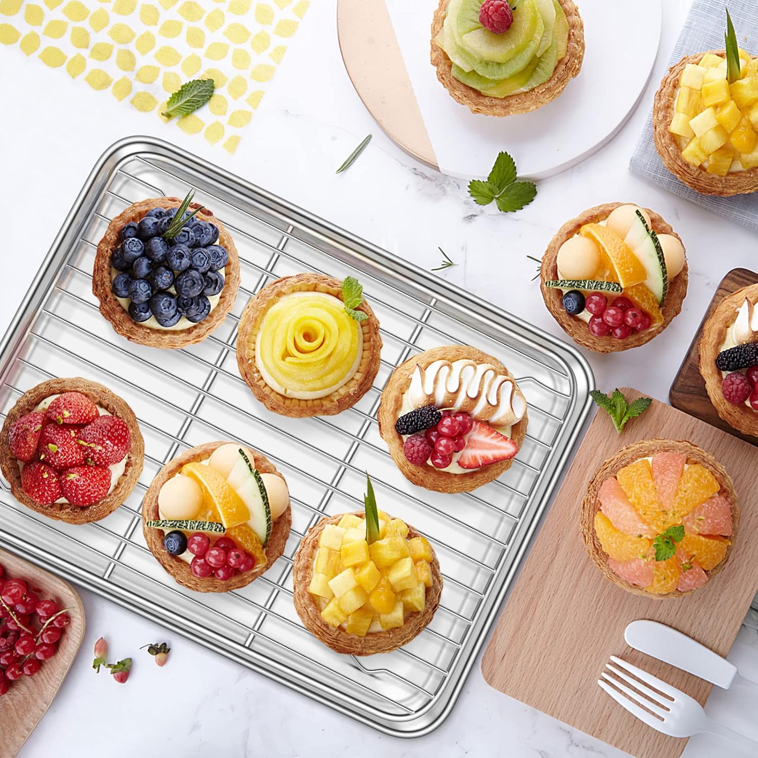 Deedro Baking Sheet with Rack Set [2 Sheets + 2 Racks], Stainless Steel Cookie Half Sheets Baking Pan Oven Tray with Cooling Rack, 12 x 10 x 1 Inch, Heavy Duty, Non-toxic, Easy Clean