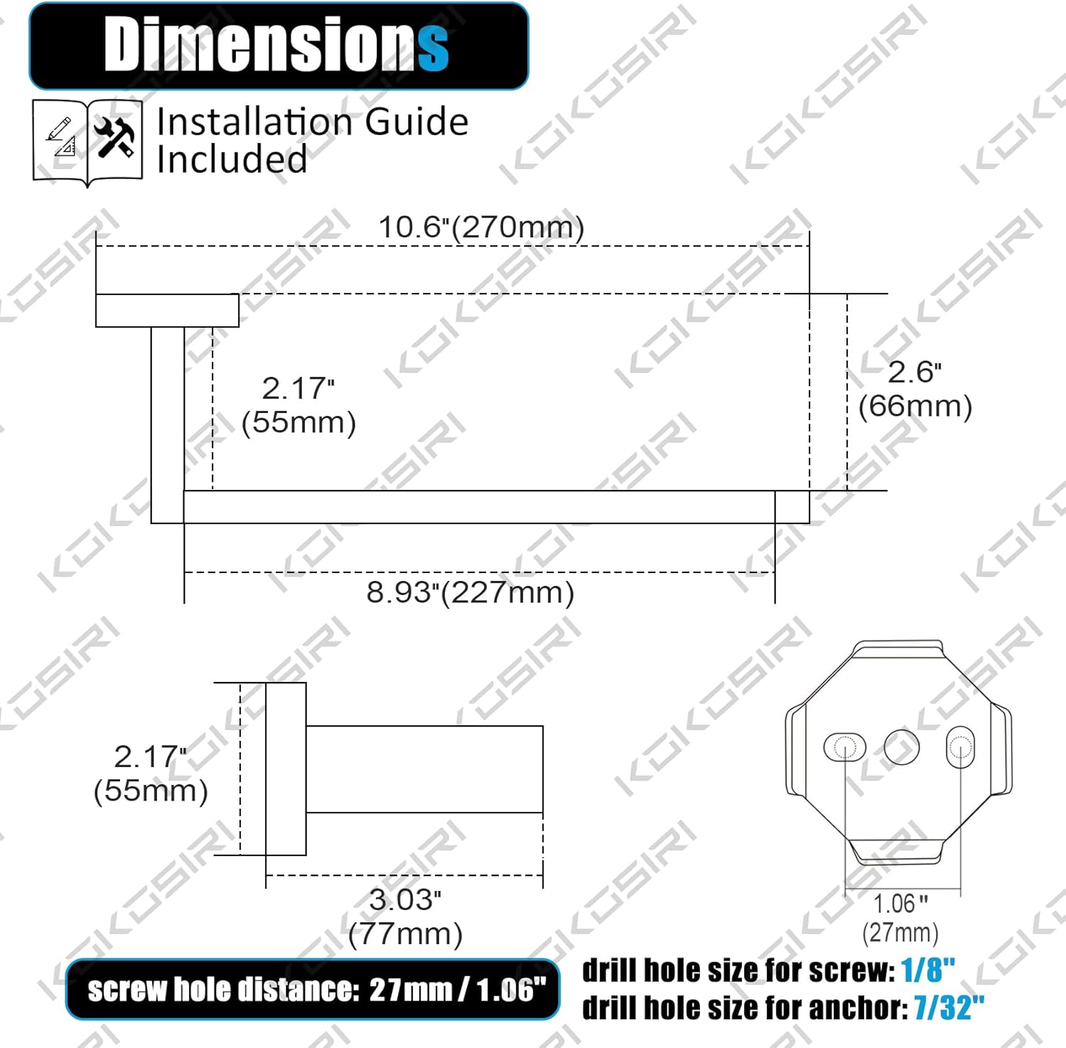 - ◄ Modern Design ► KOKOSIRI Towel bar is designed with clean and refined lines for durability. Concealed screw installation provides a elegant look and high-end style for your bathroom and kitchen. Suitable to hold hand towel or kitchen paper roll.