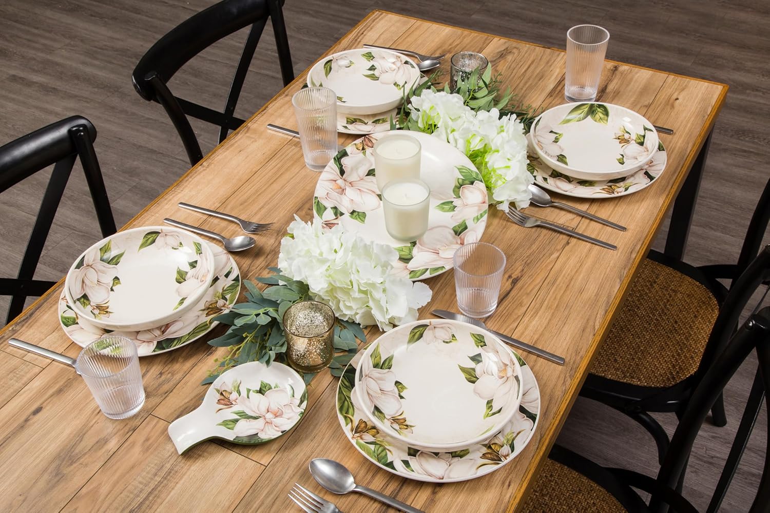 Bico Magnolia Floral Spoon Rest for Stove Top, Ceramic Spoon Holder for Kitchen Counter, Easy to Clean Coffee Spoon Rest Dishwasher Safe, Kitchen Cooking Utensil Rest for Ladles Spatula