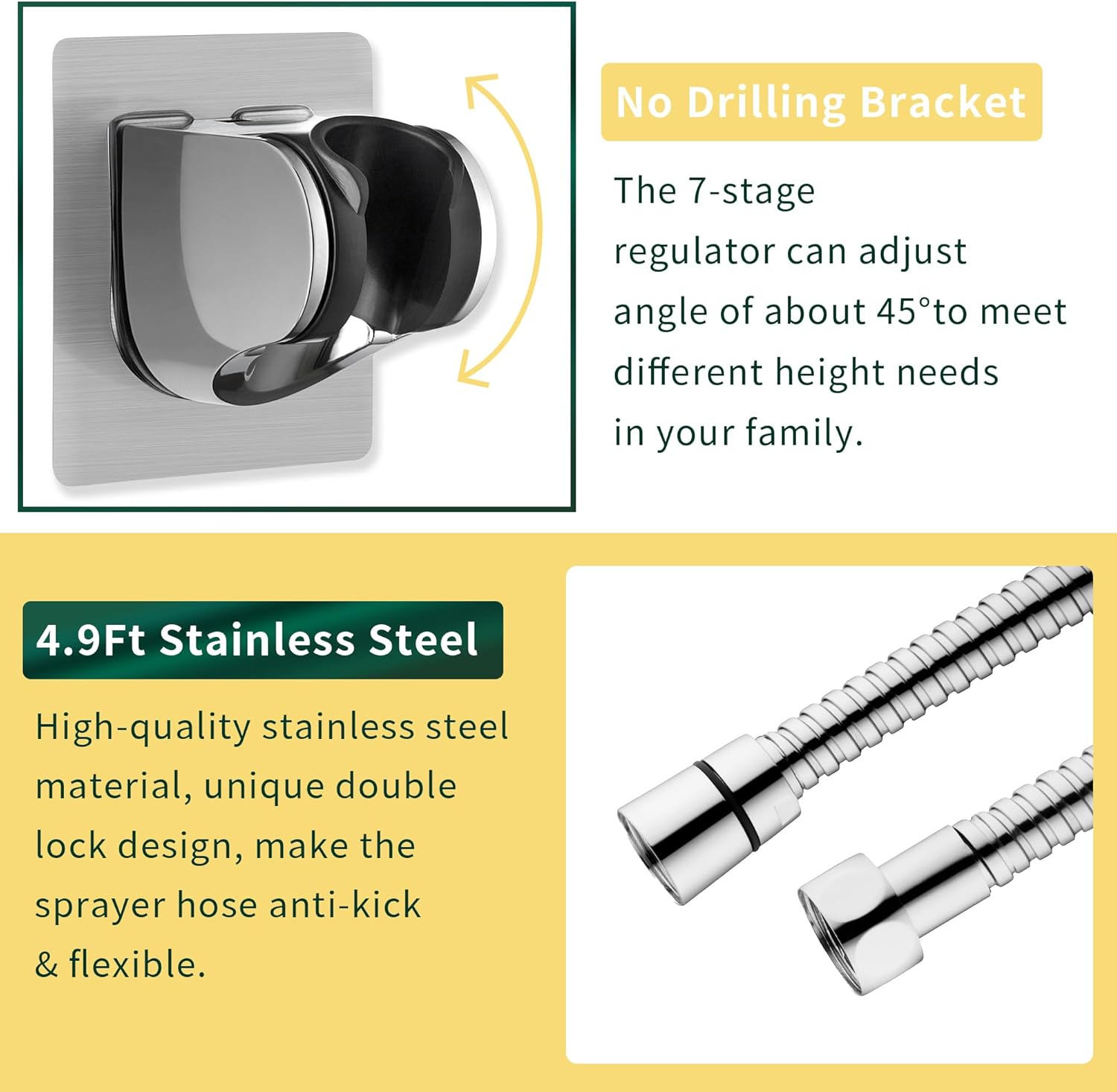 - 【4.9 FT Stainless Steel Hose】The flexible hose is made of high quality material, leak proof pipe, anti-winding. The longest stretch is 59 inch, which can be extended beyond the sink. Stainless steel corrugated hose is much more flexible and provides more convenience.