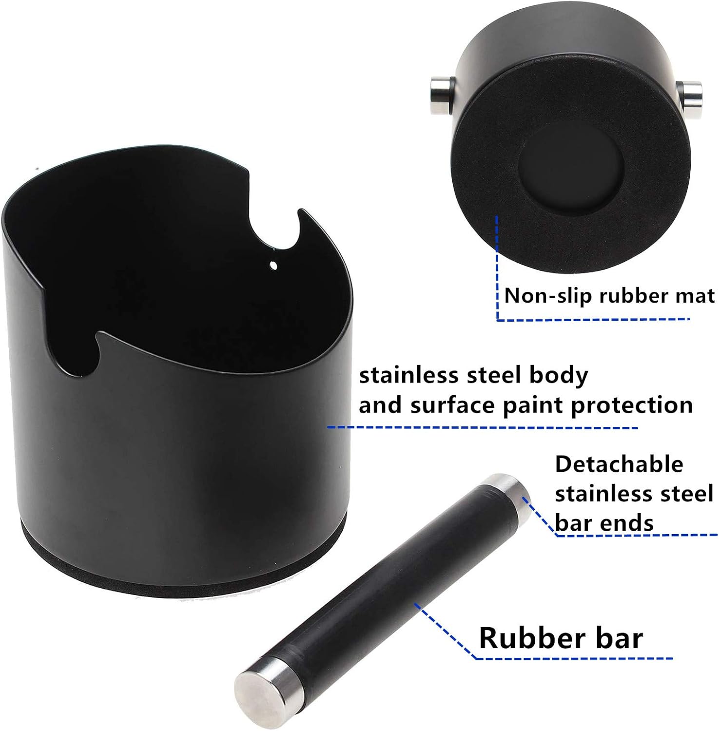 DIBTSA Espresso Knock Box, Stainless Steel Coffee Grounds Knock Box, With Removable Knock Bar and Non-Slip Rubber Base (Black)