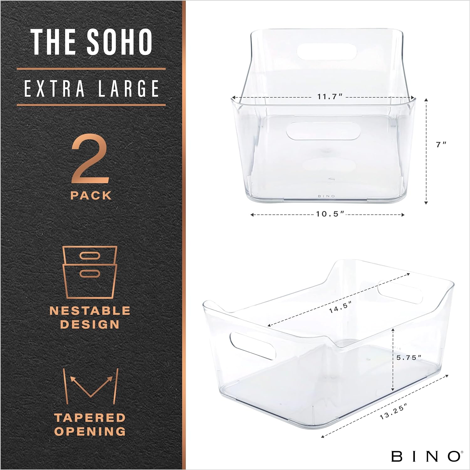 BINO | Plastic Storage Bins, X-Large - 2 Pack, Clear | THE SOHO COLLECTION | Pantry Organizers and Storage Containers Fridge Organizer Bins Kitchen Cabinet Organizer Medicine Cabinet Organizer Bin