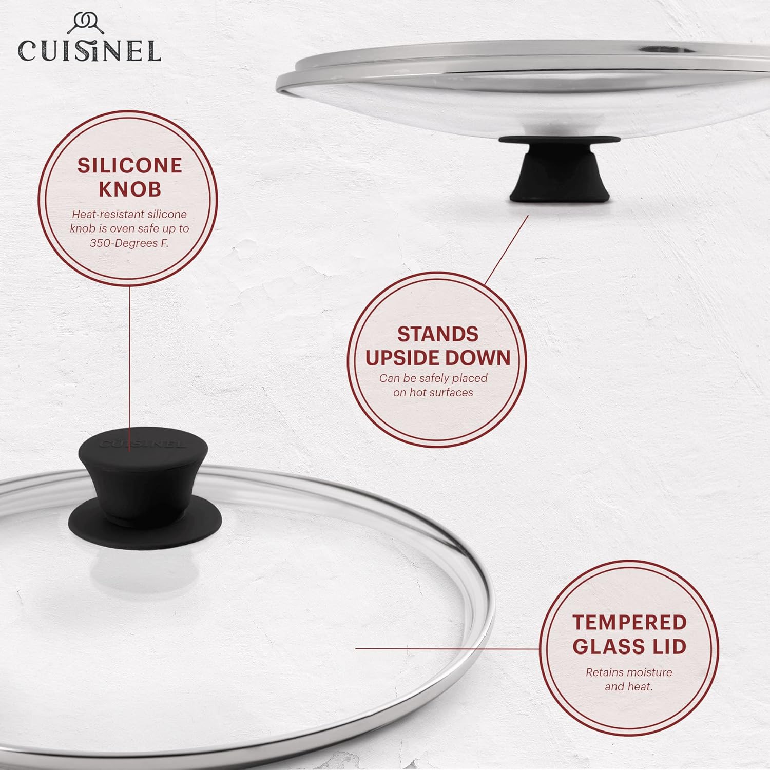 - PLEASE SEE 2ND IMAGE FOR EXACT DIMENSIONS AND MEASURE YOUR COOKWARE TO VERIFY IF IT FITS. OVEN-SAFE TEMPERED GLASS: Thermal reinforced glass is much safer and more durable than regular glass. Oven-safe up to 350-Degrees ° F make this sturdy replacement cover an essential part of your cookware accessories collection. Tempered glass can withstand drastic temperature changes and won't shatter under pressure. Transparent glass lids allow you to flaunt luxurious photo-perfect dishes in progress.