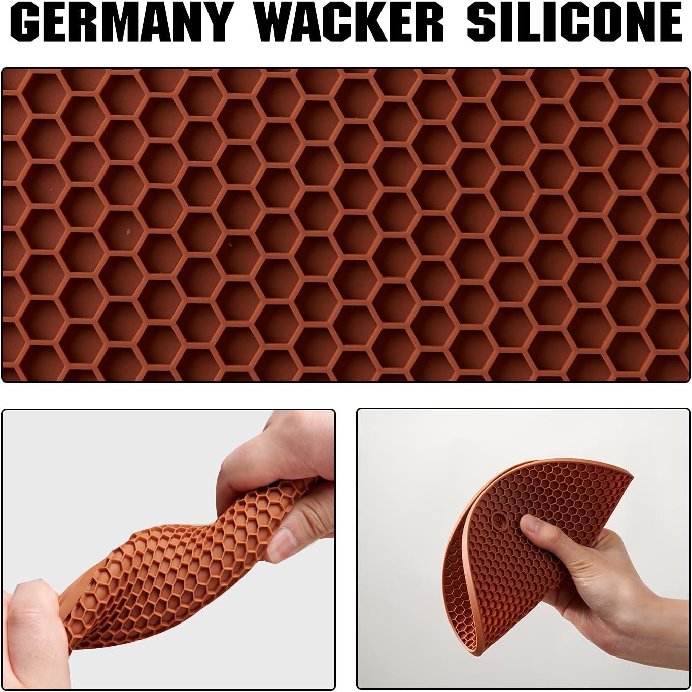 - GERMANY WACKER SILICONE: All trivets are manufactured using wacker silicone, temperature resistant from -105F to 446F, and oven, microwave, and dishwasher safe too.