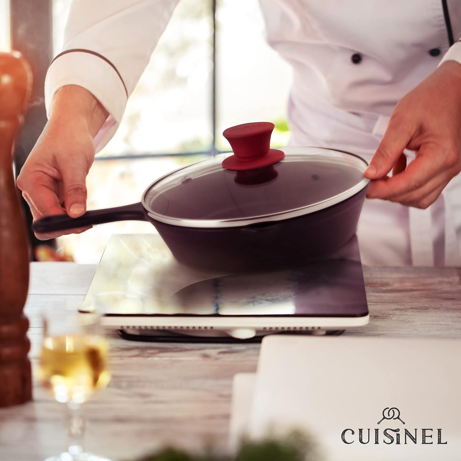 - STEAM VENT HOLE: Cuisinel's professional quality lids β now updated with steam vent holes to prevent liquid from boiling over. Vent holes allow just the right amount of moisture to evaporate easily so your food doesn't saturate in liquid. Vent holes make sure the glass lid doesnβt cloud up β allowing you to easily see cooking progress without removing lid.