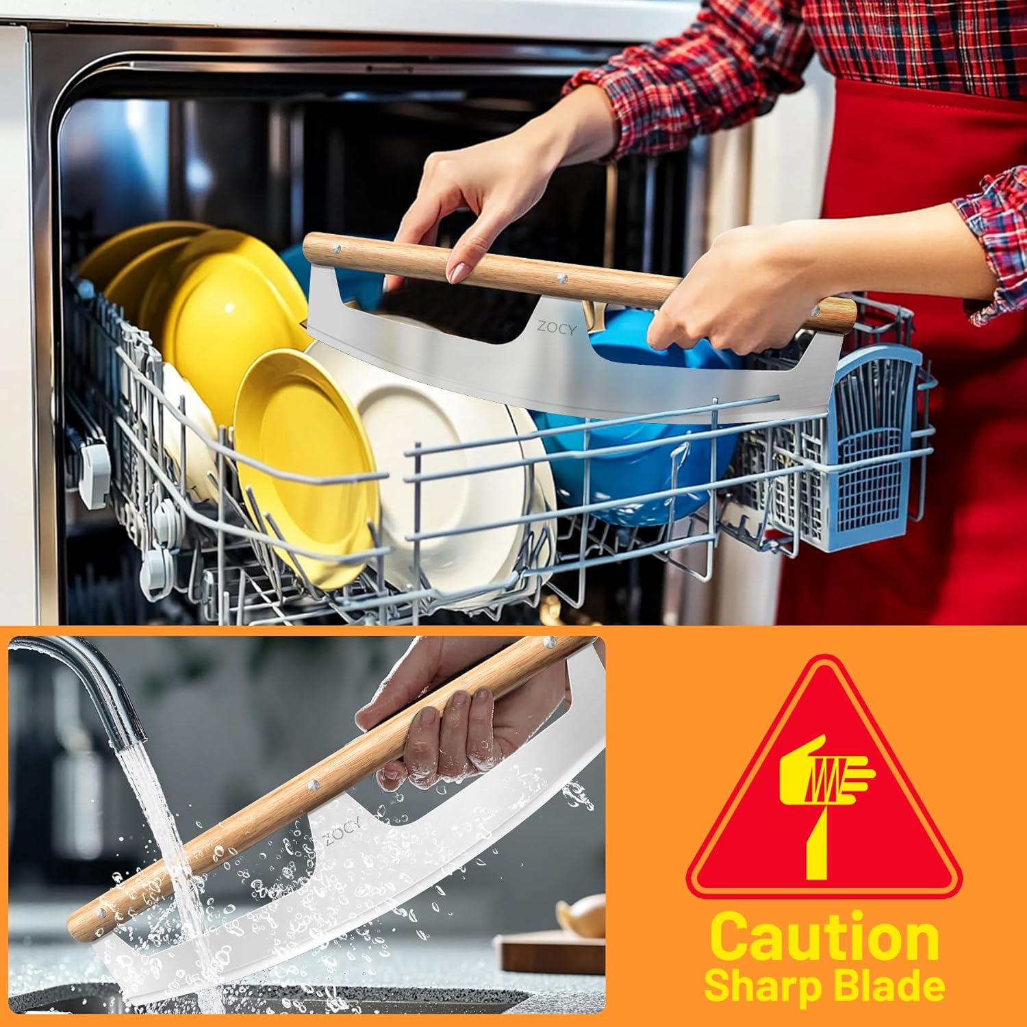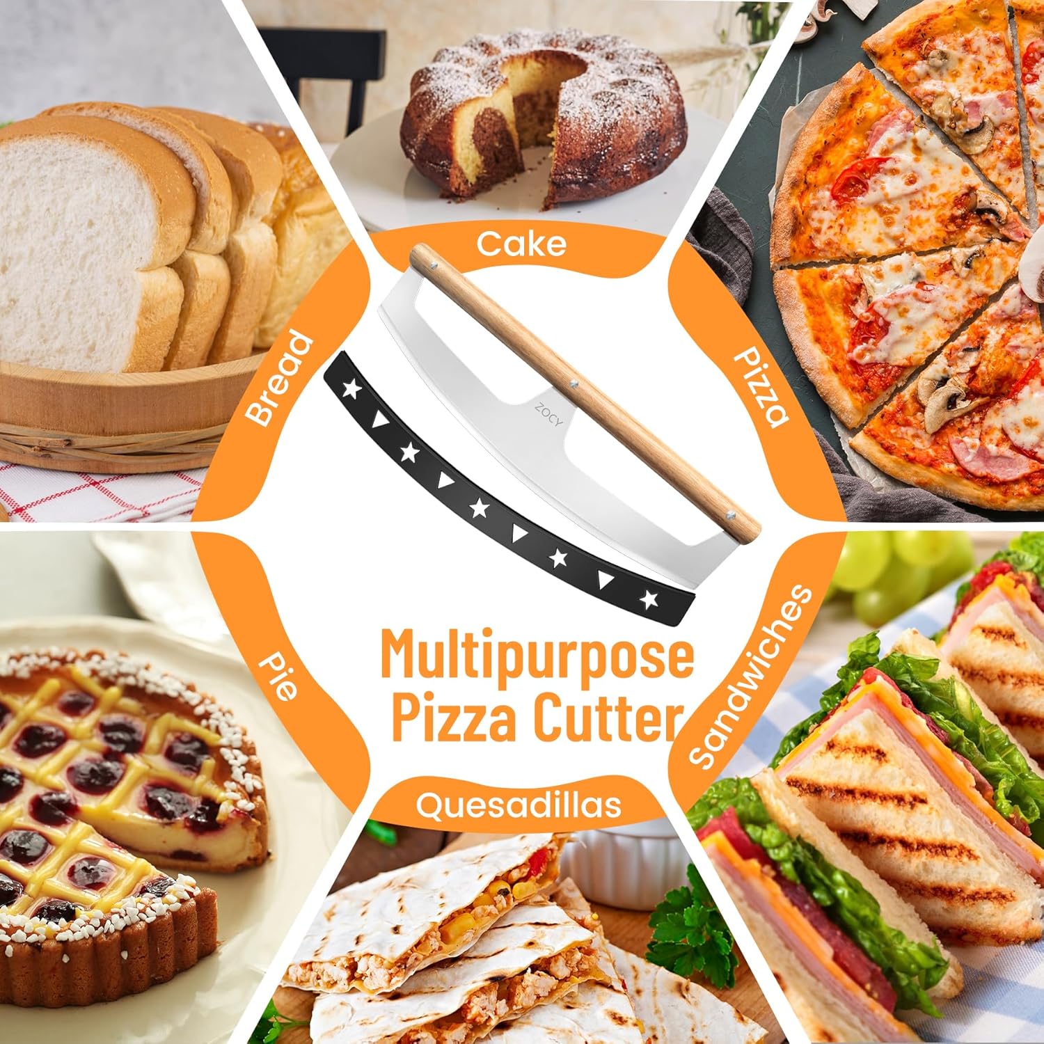 Pizza Cutter Rocker with Wooden Handles & Protective Cover by Zocy, 16" Sharp Stainless Steel Pizza Slicer Wheel, Big Pizza Knife Cutters for Kitchen Tool (16inch)