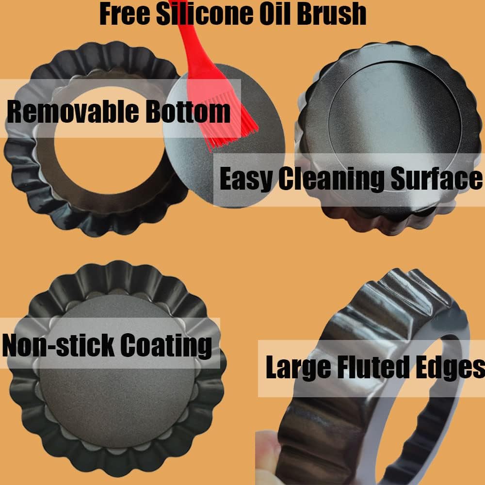 - 【REMOVABLE BOTTOM】The tart pan set fluted made from thickened carbon steel materials, non-stick, cute, classy and chic fluted edges. Exspecially, removable false bottom for easy operation, they made perfect , sturdy shells that popped out easily with removable bottoms, speed up cooling and didn't affect the appearance of the tarts, made it easy to create a fancy dessert.