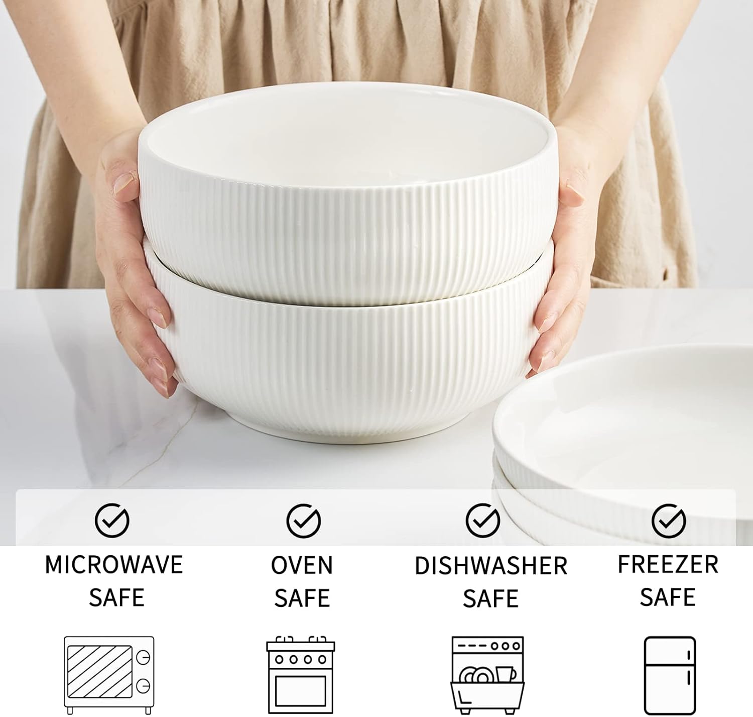 - SAFE & HEALTHY BOWLS: Made of premium ceramics, resisting heat, safe for ovens, microwaves, dishwashers, fridges & freezers. Cadmium and lead free, harmless & food-grade material, reassured to use these serving bowls