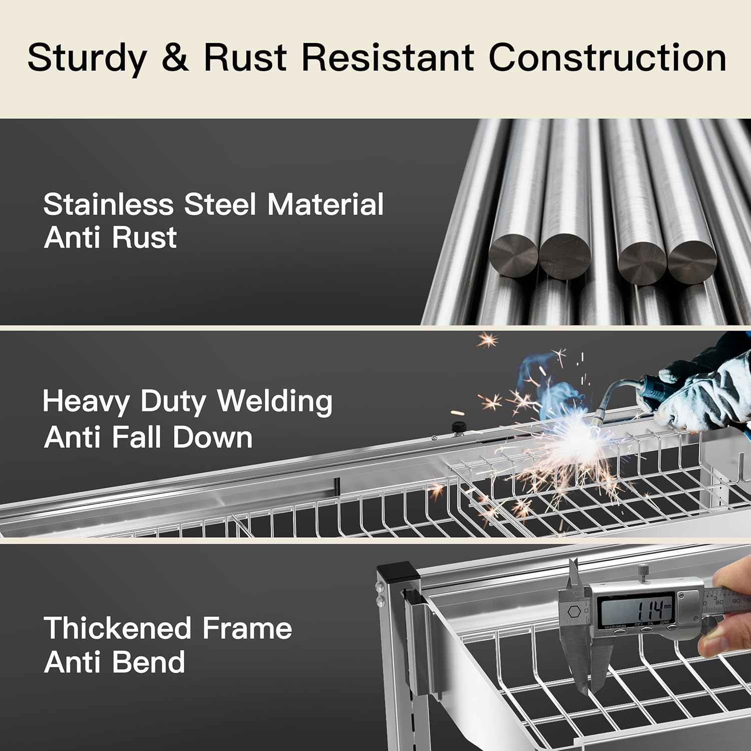 - ๐ฉ Sturdy & Rust Resistant Construction: Crafted with heavy duty stainless steel and reinforced welding, this over the sink dish drainer drying rack resists corrosion and daily wear. Its industrial grade framework securely holds bulky pots, pans, and dishware without sagging, even when fully loaded, ideal for families seeking a lasting solution to countertop clutter
