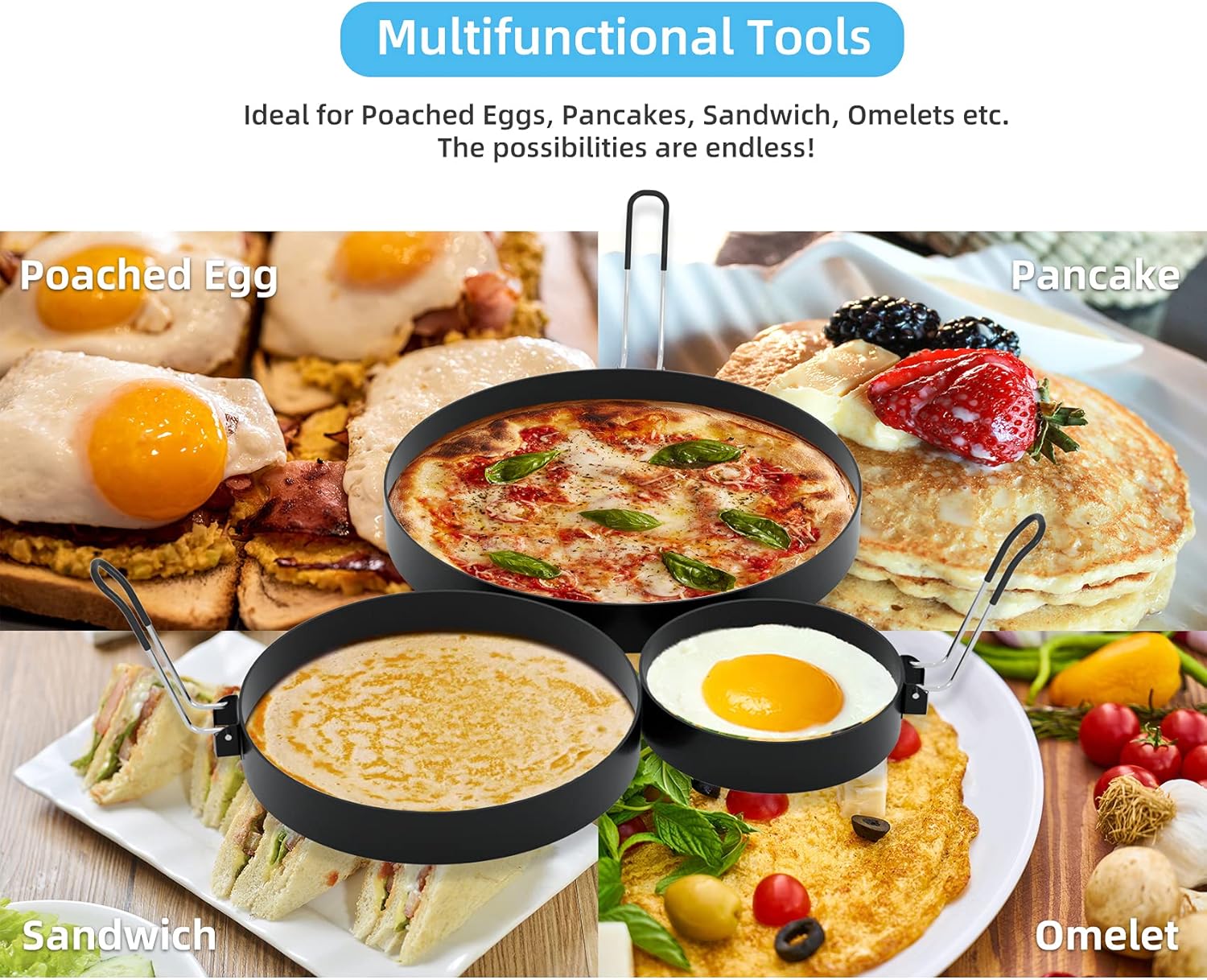 - 【3.5” Egg Ring】- Make eggs that fit perfectly on your English muffins, making homemade breakfast sandwiches look just as good as they taste! These Egg Mold can also be used to make smaller sized pancakes.