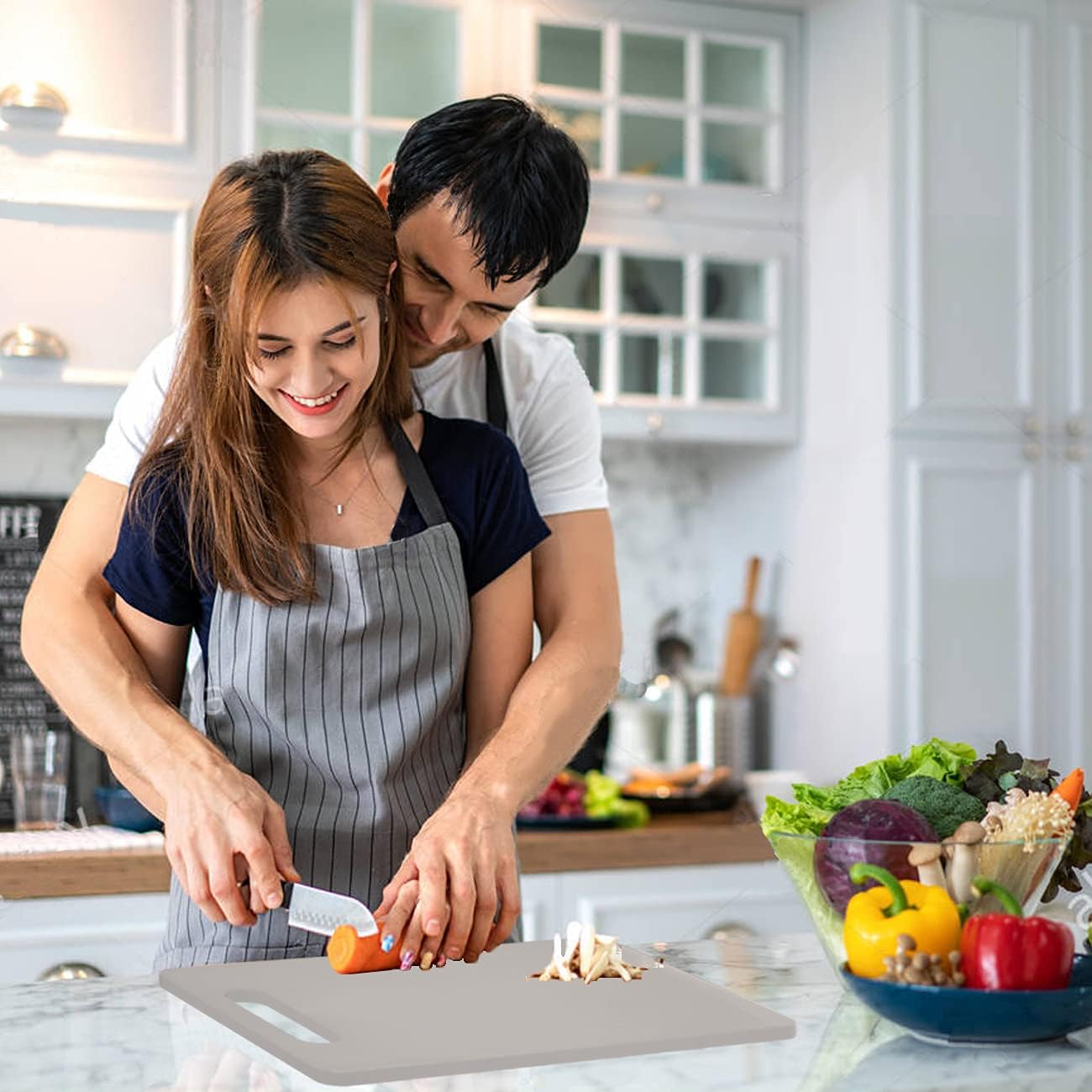 Fotouzy Plastic Utility Cutting Board with Handles, Food Safe PP Material, BPA Free, Dishwasher Safe, Thick Chopping Board, Large Size, Easy Grip Handle, for Kitchen (Almond)