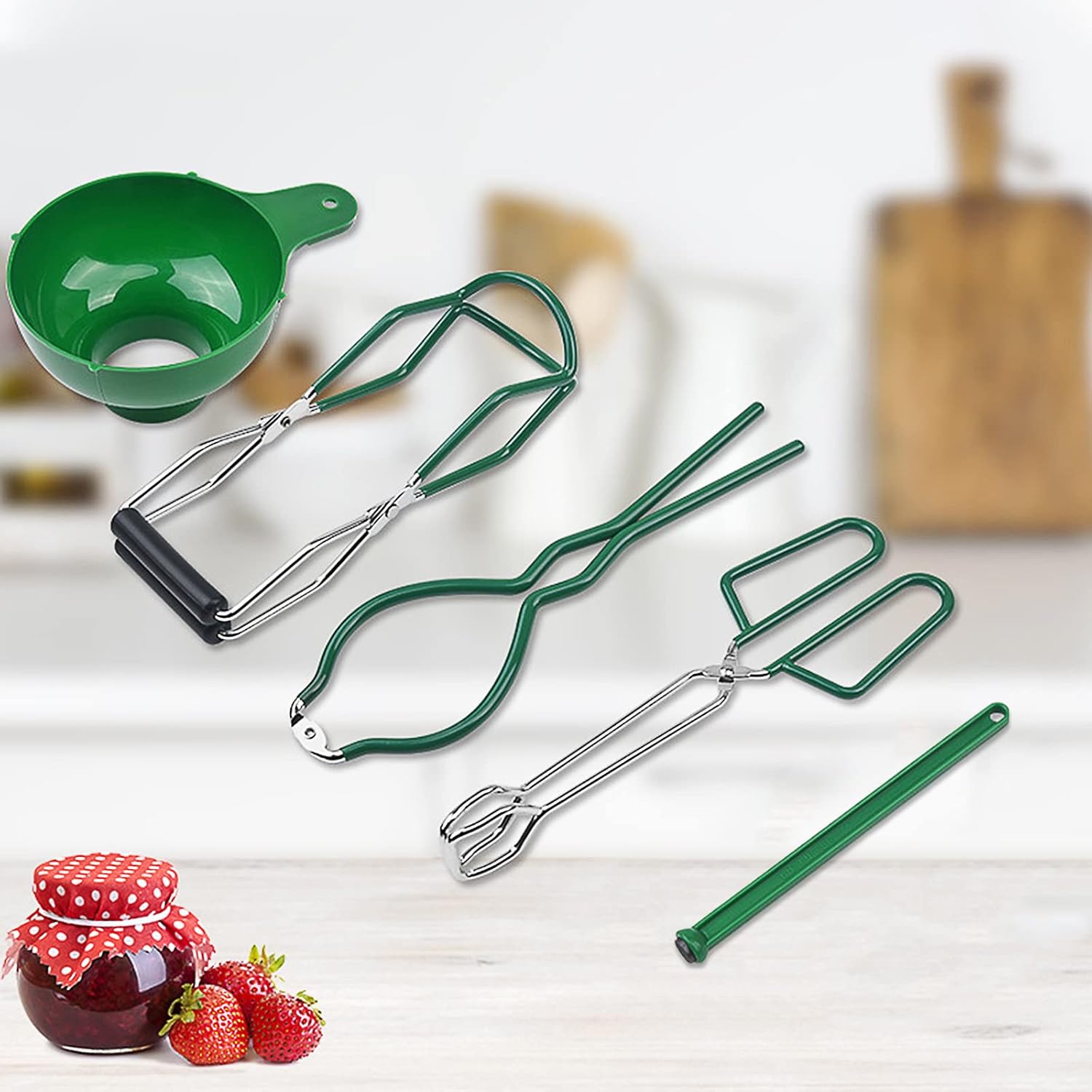 5PCS Canning Supplies Canning Kit, Canning Essentials Set Include Tongs, Wide Mouth Funnel, Jar Lifter, Jar Wrench, Magnetic Lid Lifter, Stainless Steel Anti-Scald Clip Suit (Green)