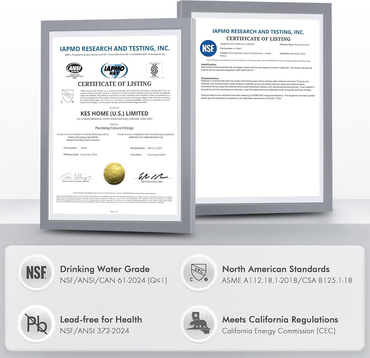 - cUPC NSF Certified: Faucet body is made of premium grade NO-LEAD brass (with less than 0.25% lead content), complied with the Safe Drinking Water Act (SDWA), Uniform Plumbing Code (certified by IAMPO) and NSF/AB1953 no-lead regulation.