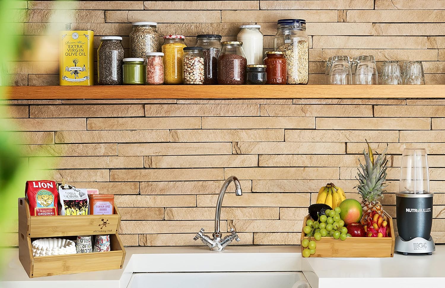 Bamboo Storage Bin - Multipurpose Open Front Stacking Bins for Kitchen & Pantry - Configurable as 2 Tier Bamboo Fruit Basket on Countertop – Ideal for Vegetables, Potato and Onion Storage Bin
