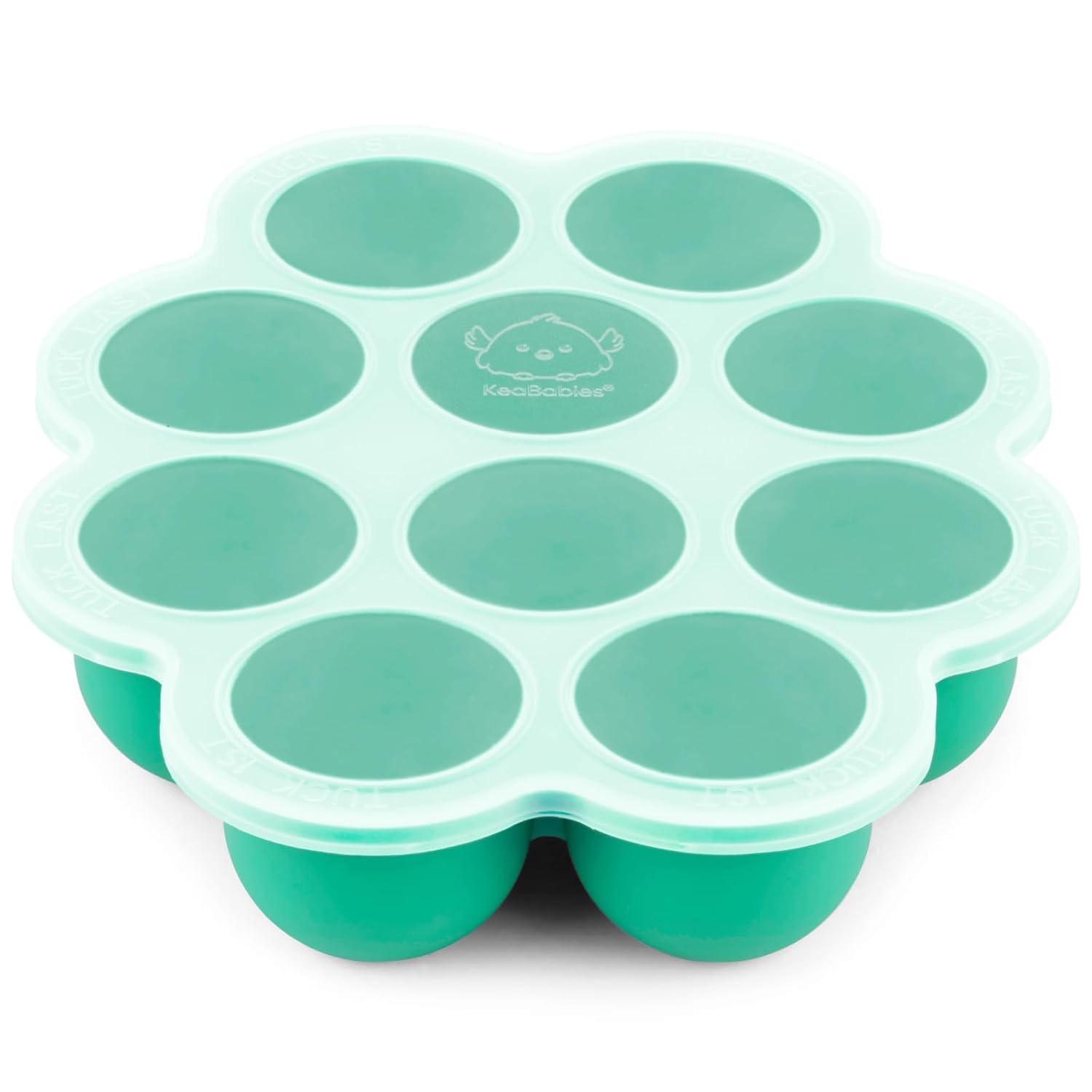 KeaBabies Silicone Food Freezer Trays with Lid, 2oz x 10 Pods Baby Food Storage Containers, Easy Puree Meal Prep, Breast Milk Silicone Freezer Molds, Dishwasher,Microwave Safe,BPA-Free(Alpine Green)
