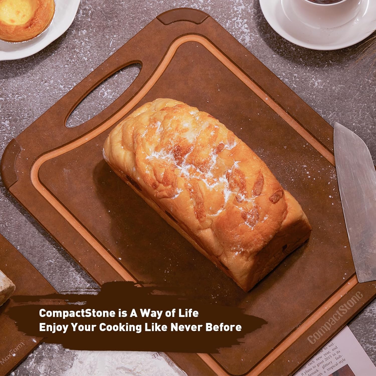 Cutting Board with Non-Slip Feet and Juice Groove for Kitchen, Wood Fiber Composite, 14.6-Inch by 10.8-Inch, Brown