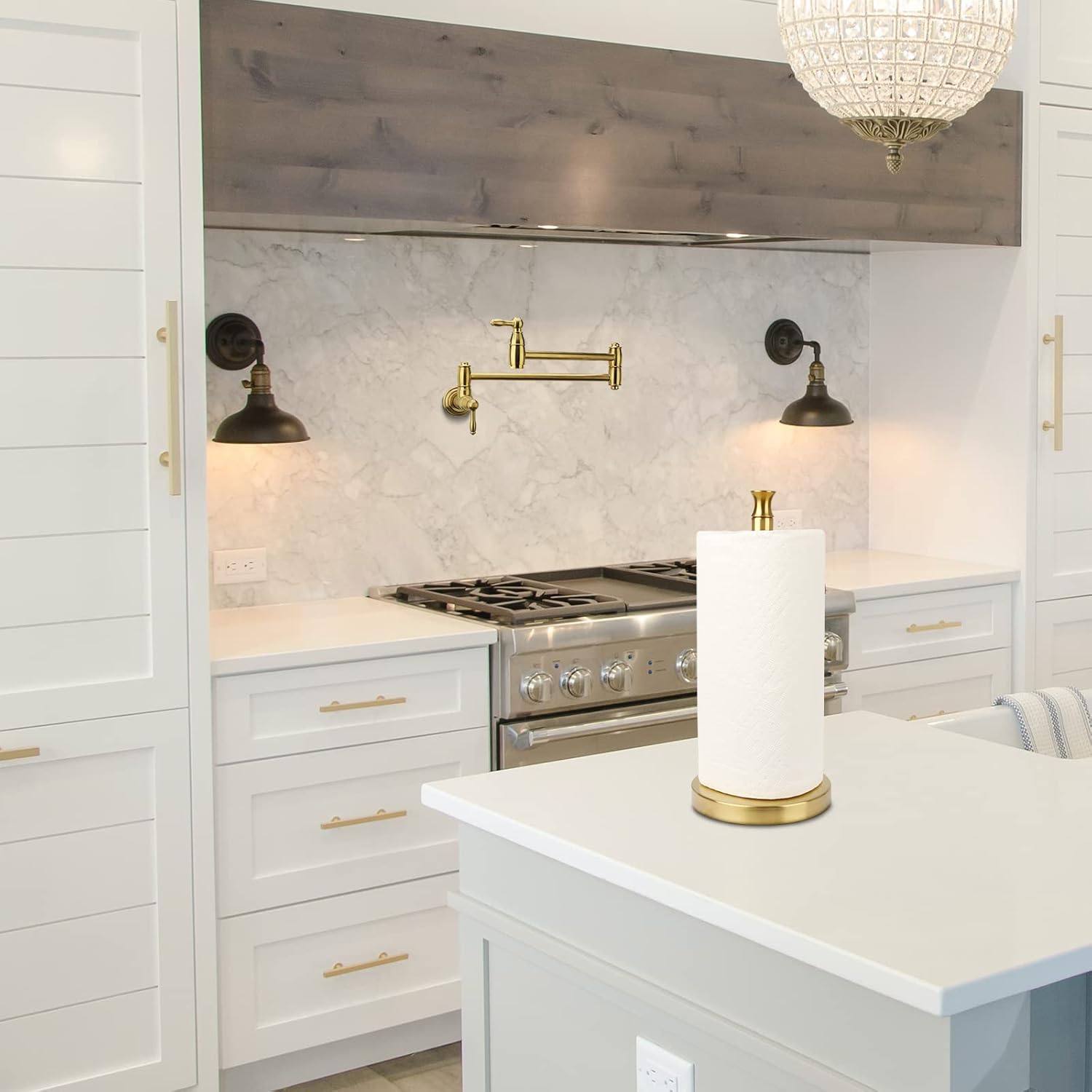 Akicon Paper Towel Holder Stand for Kitchen Countertop & Dining Room Table (Brushed Gold Brass Paper Towel Holder Stand, Modern)