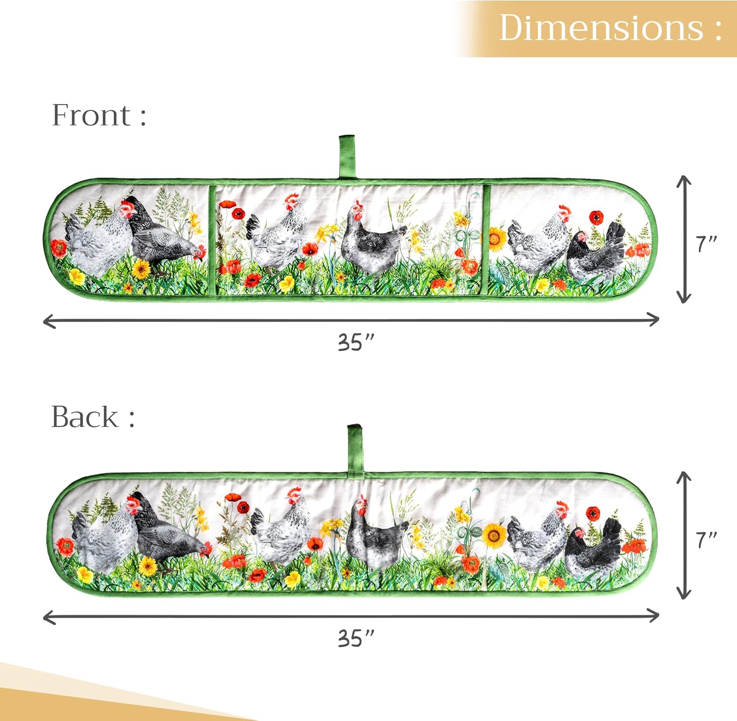 Maison d' Hermine Double Oven Mitts 100% Cotton 7"x35" Double Oven Mitt Heat Resistant BBQ Cooking Gloves with Loop, Baking, Grilling, Home, Kitchen, Handling Hot Pans Spring Summer (Basse Cour)