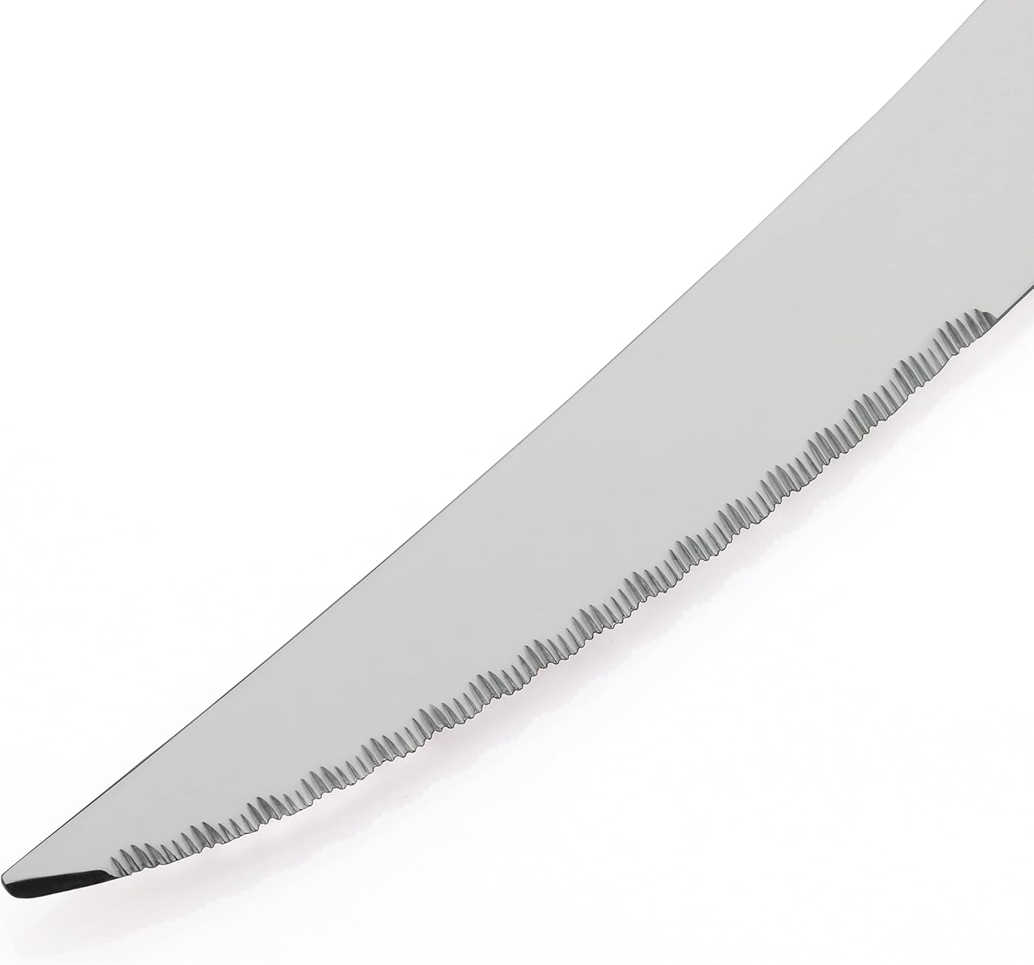 - 【Dinner Knife】The gear-shaped knife edge makes it easy for you to cut off food. Because this silverware set is made of high-quality stainless steel, the material is hard, so it is not easy to bend when you use it.