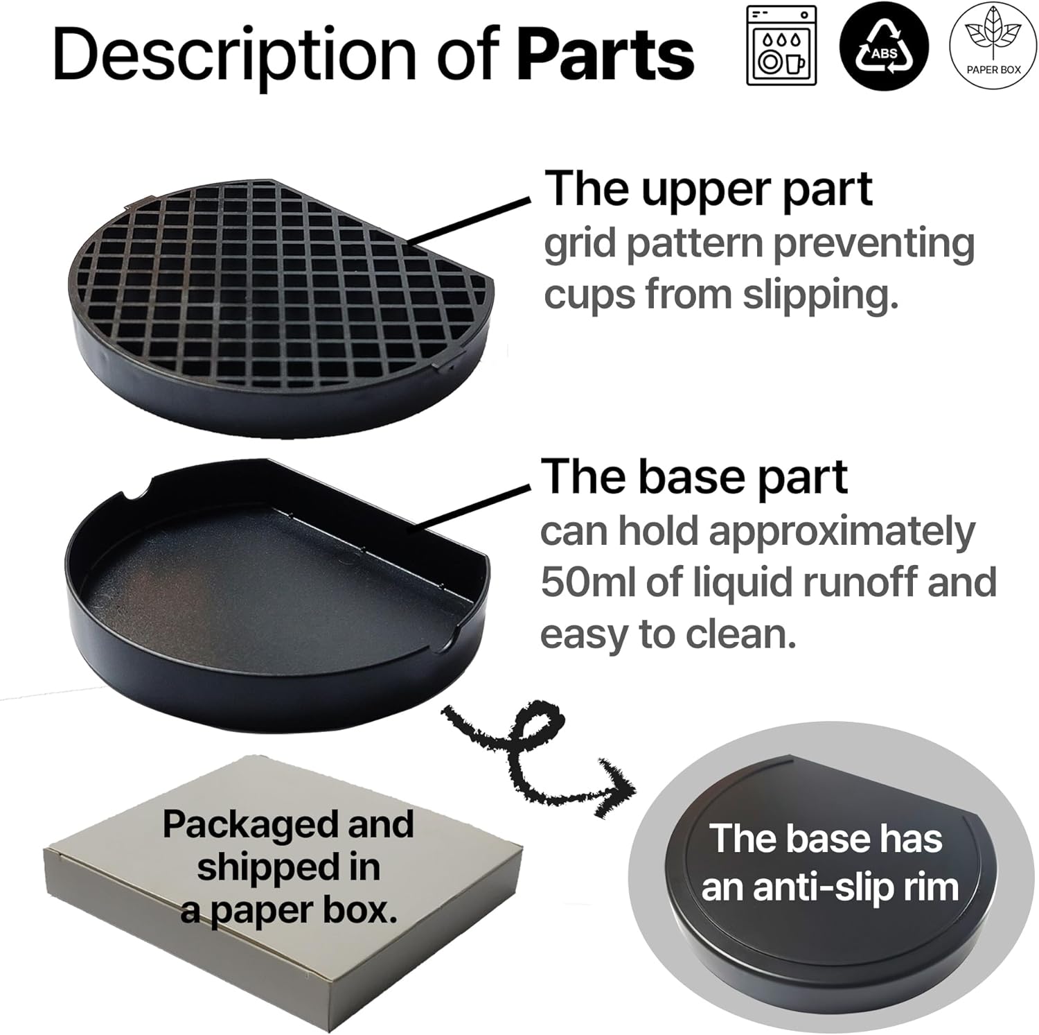 2, Coffee Drip Catcher 4 inches Small Drip Tray for Espresso Machine Carafe Water Urn Durable ABS Plastic, Black
