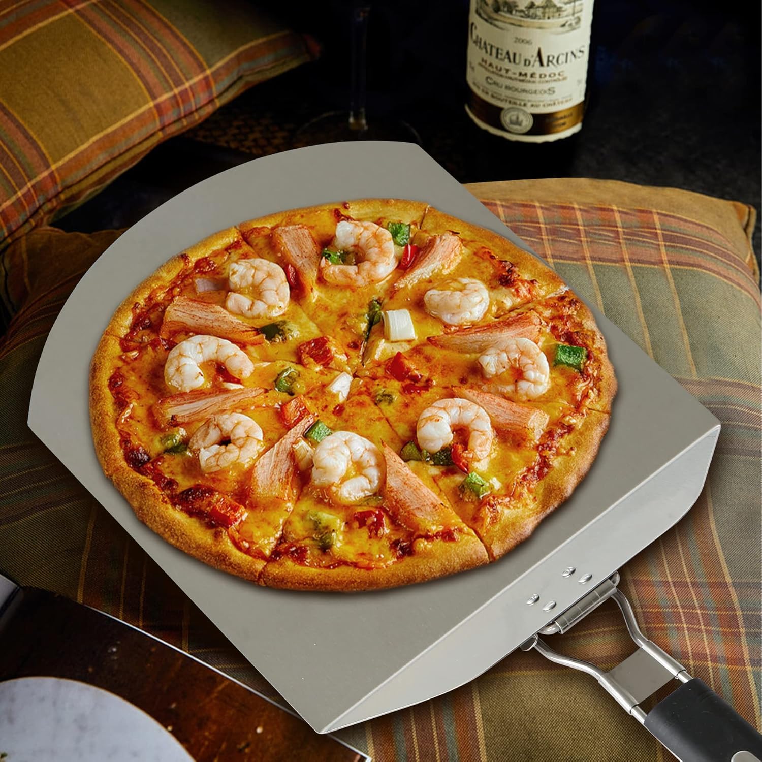 - Stainless Steel Pizza Peel needn't to worry about pizza peel will absorb unwantedodor or any liquid, rubber material of handle is antislip and easy to grip