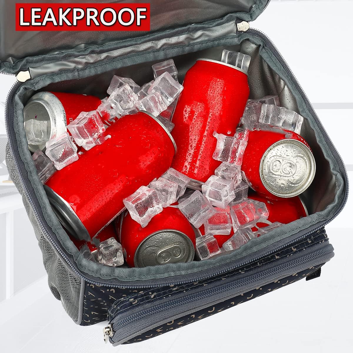FlowFly Double Layer Cooler Insulated Lunch Bag Adult Lunch Box Large Tote Bag for Men, Women, With Adjustable Strap,Front Pocket and Dual Large Mesh Side Pockets