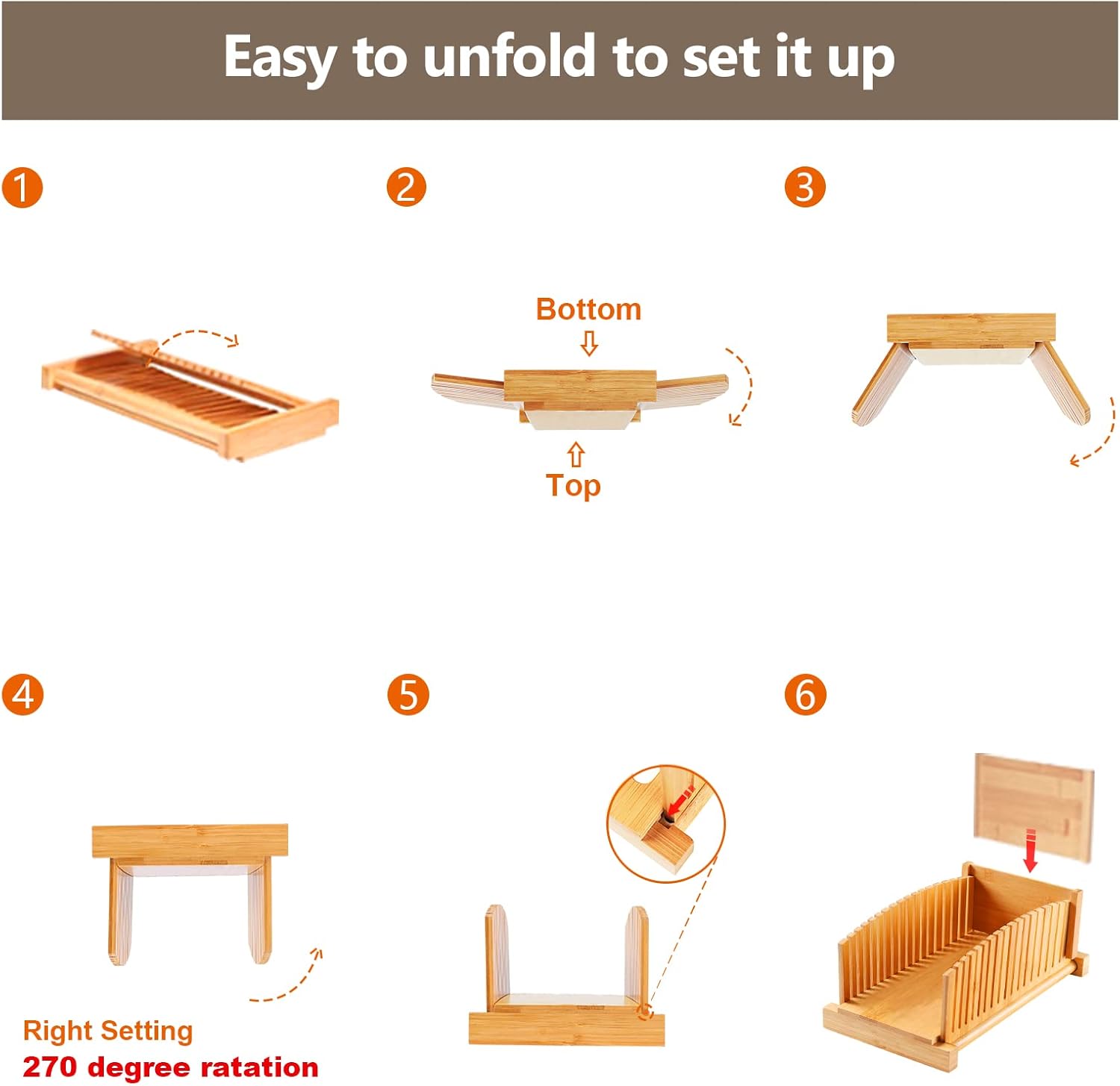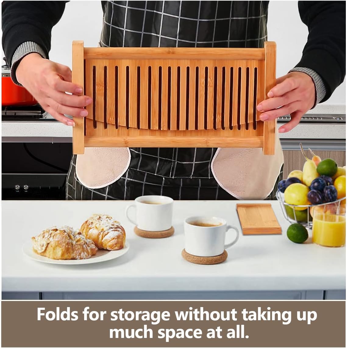 Premium Bamboo Bread Slicer for Homemade Bread, Crumb Catcher, Foldable and Compact Loaf Cutter 3 Size Slicing Guide
