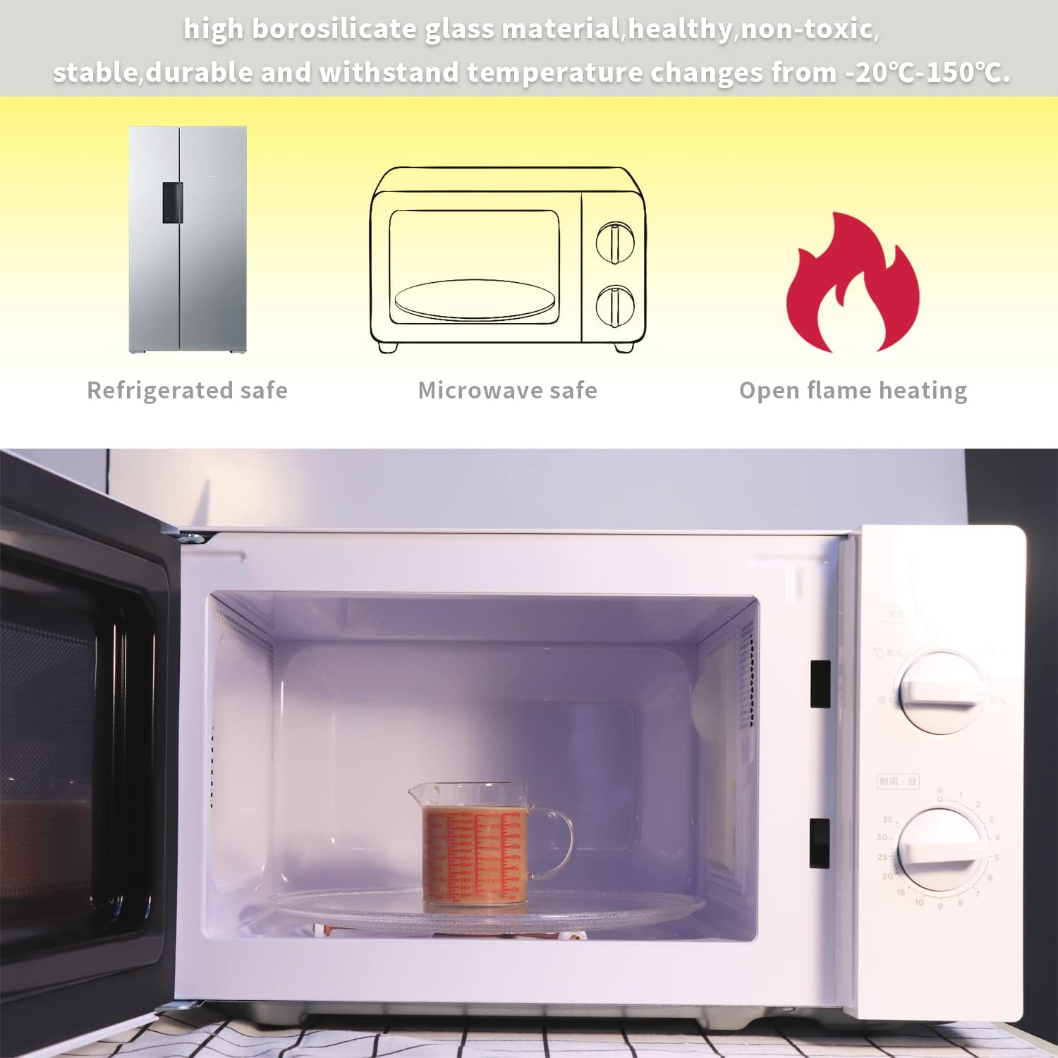- STURDY CONSTRUCTION: Made of high borosilicate glass. Special weighted base helps reduce tipping for less mess.Suitable for gas stove, microwave oven, electric ceramic stove, oven and refrigerator, not safe in induction cooker