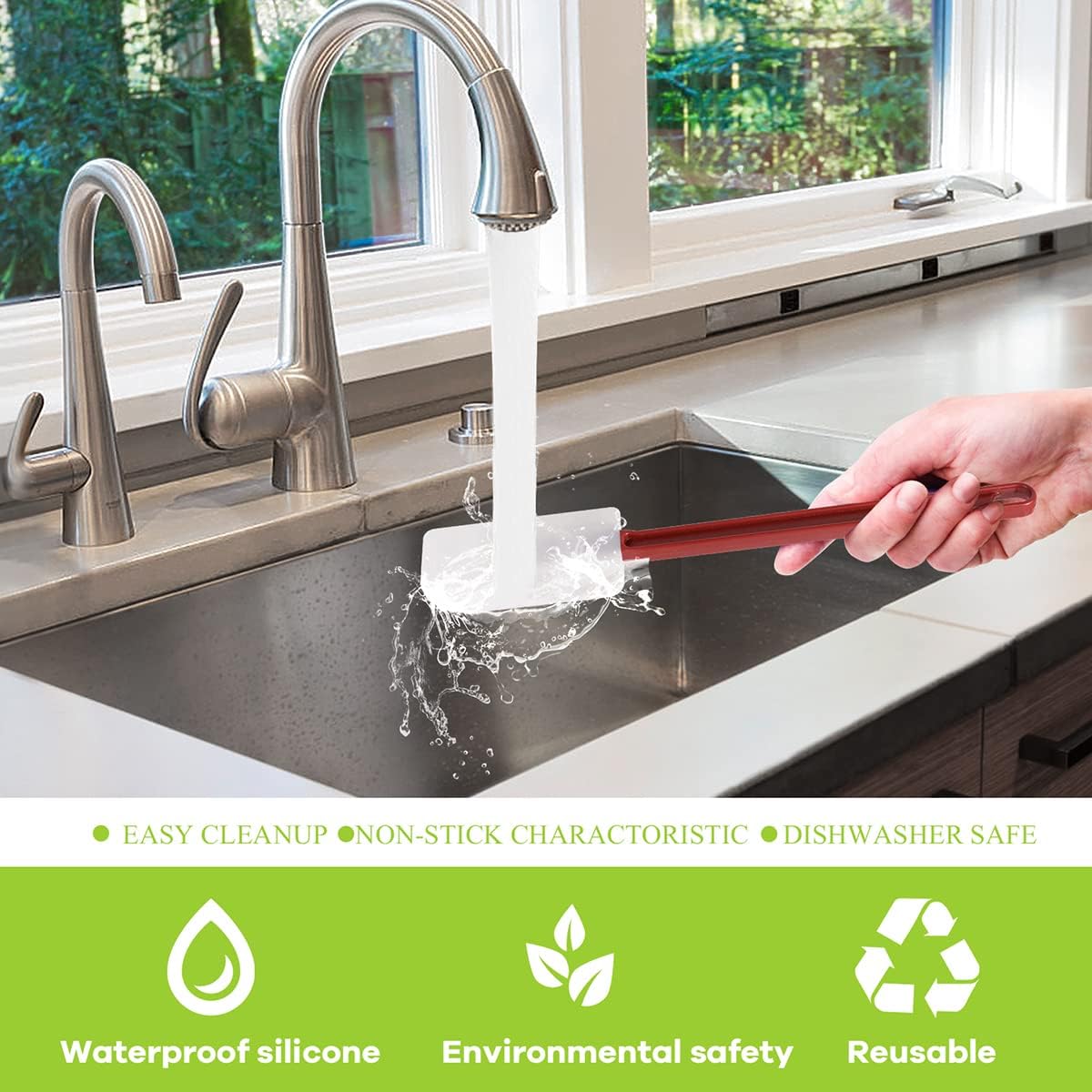 - DISHWASHER SAFE: Its silicone blade resist up to 500 ℉(260 ℃), not going to melt or warp under high heat. And its nylon handle perfectly protects your hands away from the heat. Perfect for either home use or professional commercial cooking. Easy to clean too, with just a quick wipe of a damp sponge, this rubber spatula gets cleaned within a few minutes, no oily blade; Dishwasher safe too.