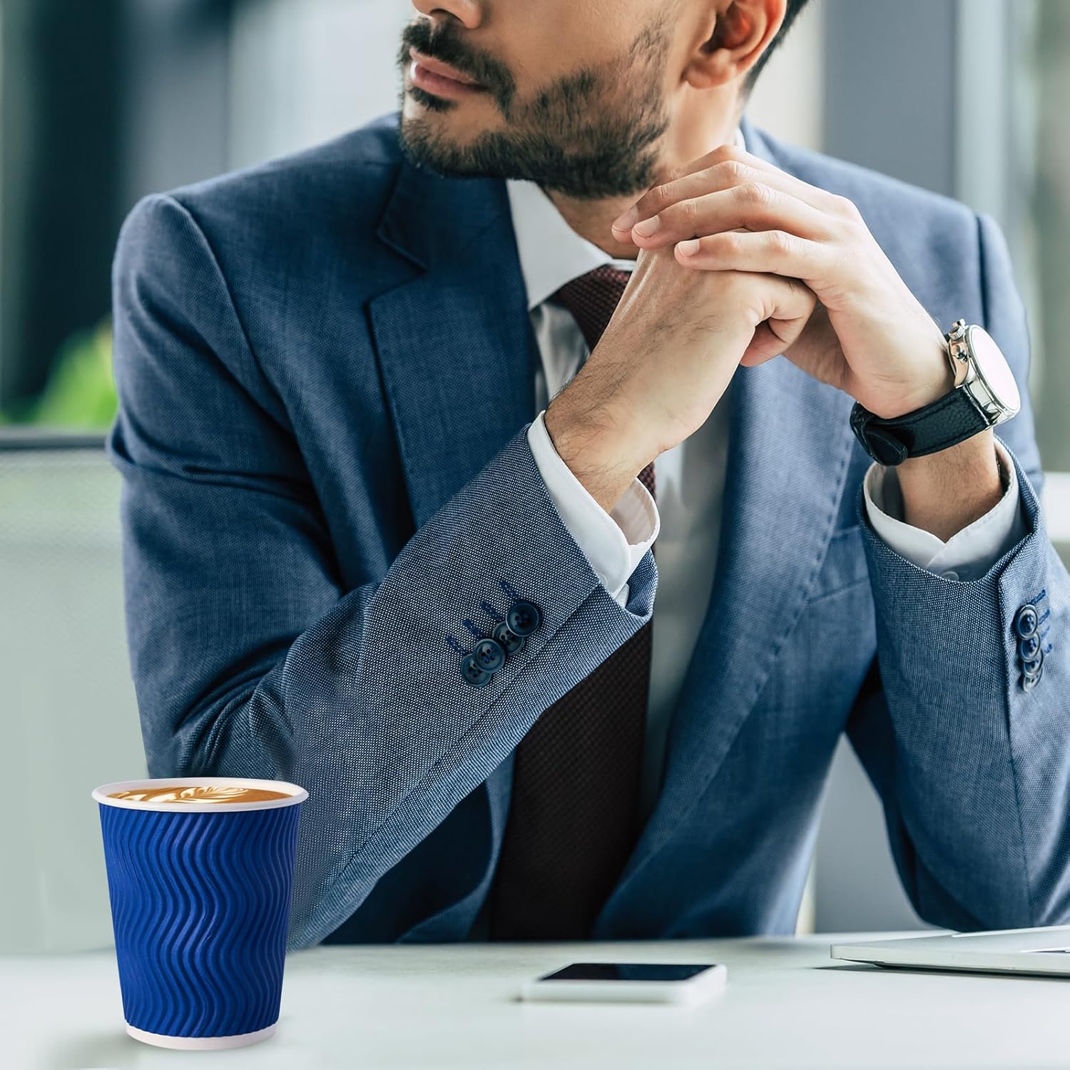 JollyPack 120 Pack 8 oz Paper Coffee Cups, Blue Disposable Beverage Cups with Insulated Ripple Wall for Coffee, Tea, and Hot Chocolate