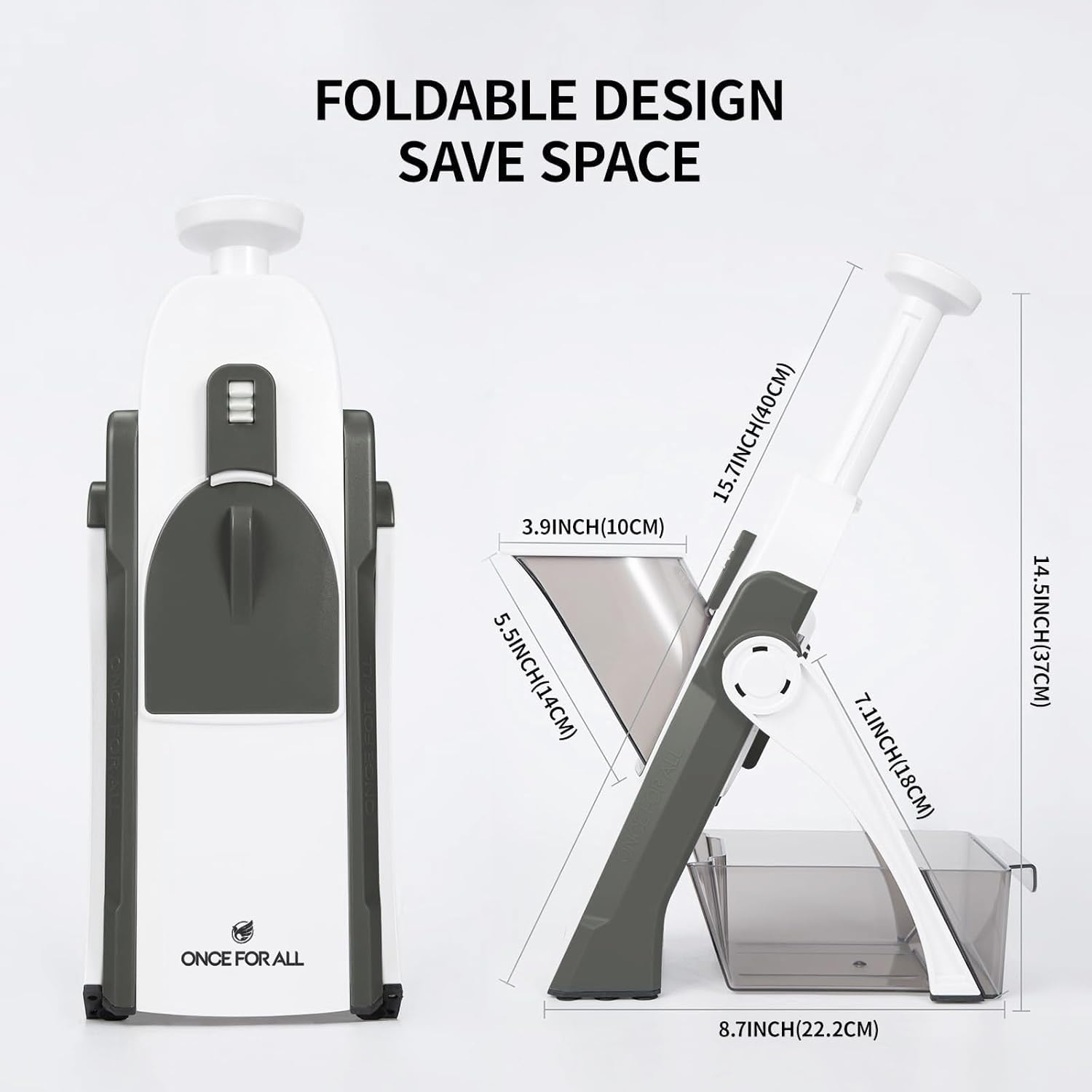 ONCE FOR ALL Upgrade Safe Mandoline Slicer Plus, Adjustable Vegetable Food Chopper Potato Fries French Fry Cutter, Detachable Blade, Kitchen Chopping Artifact, New Kitchen Gift (DarkGray)
