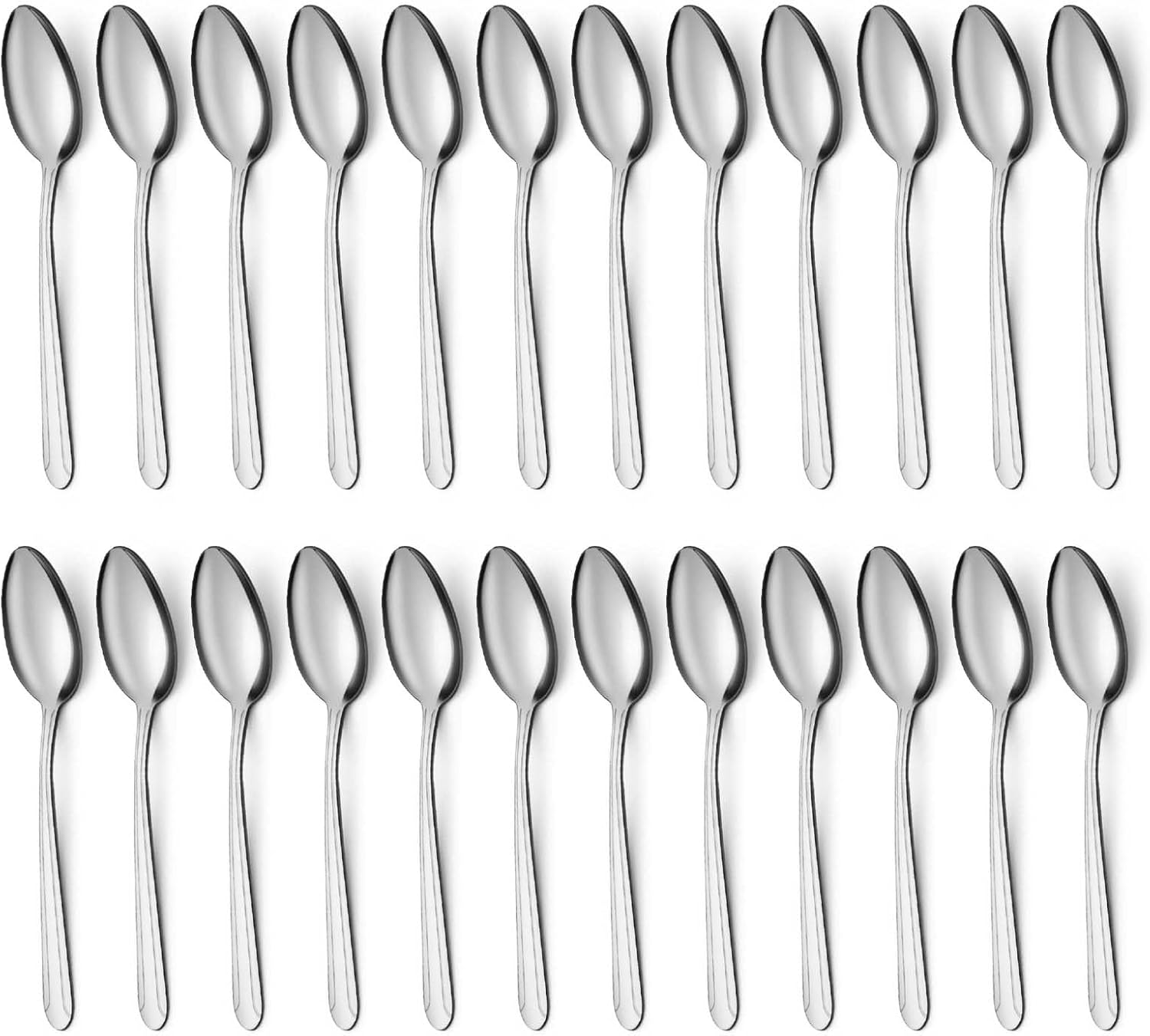 BEWOS 24 Pieces Tea Spoons Set, 6.2 Inches Stainless Steel Teaspoons Silverware, Coffee Spoons, Small Mirror Polished, Dishwasher Safe, Silver For Home, Restaurant