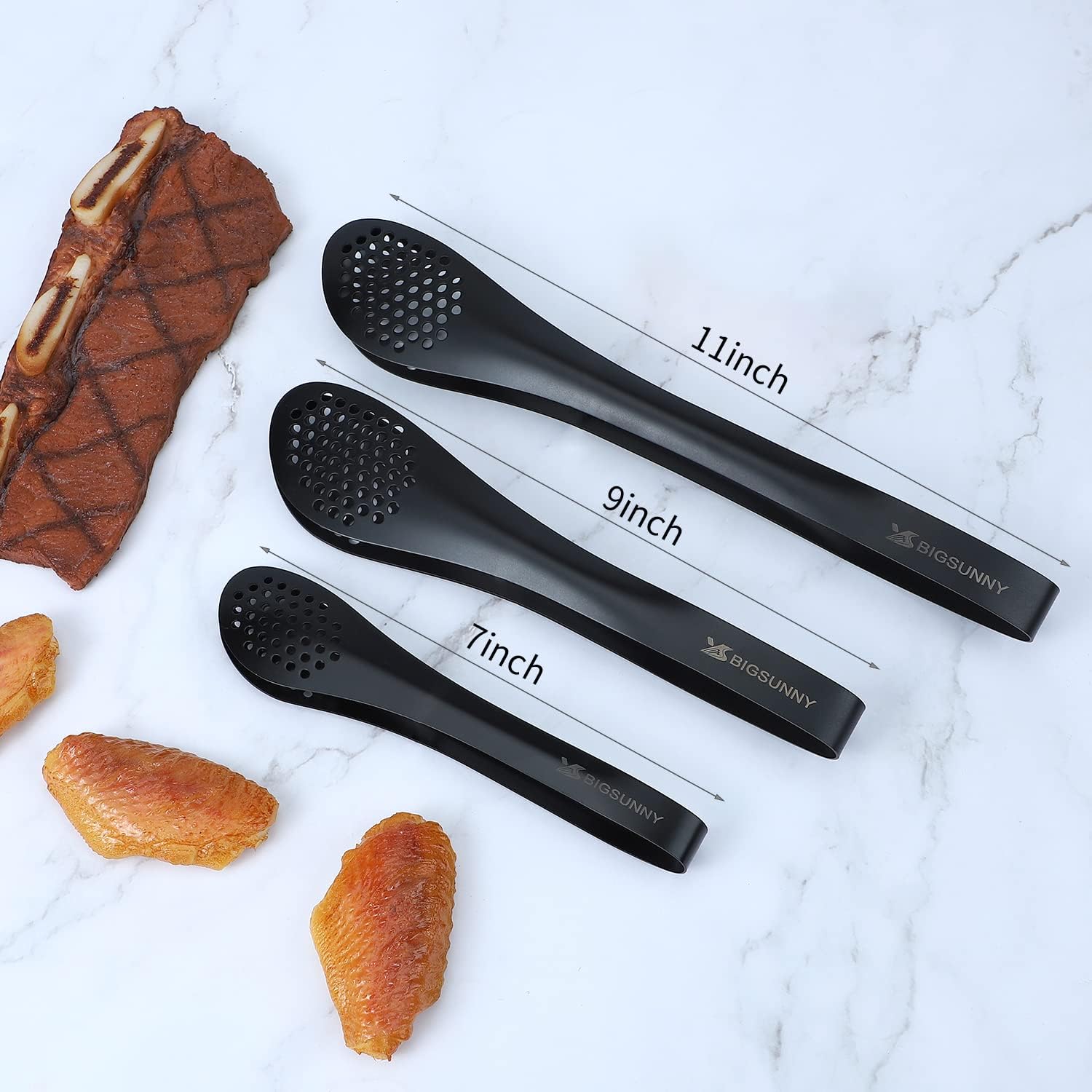 - PACKAGE CONTENT - The stainless steel tongs comes with 7-inch, 9-inch and 11-inch, different sizes can meet your daily needs