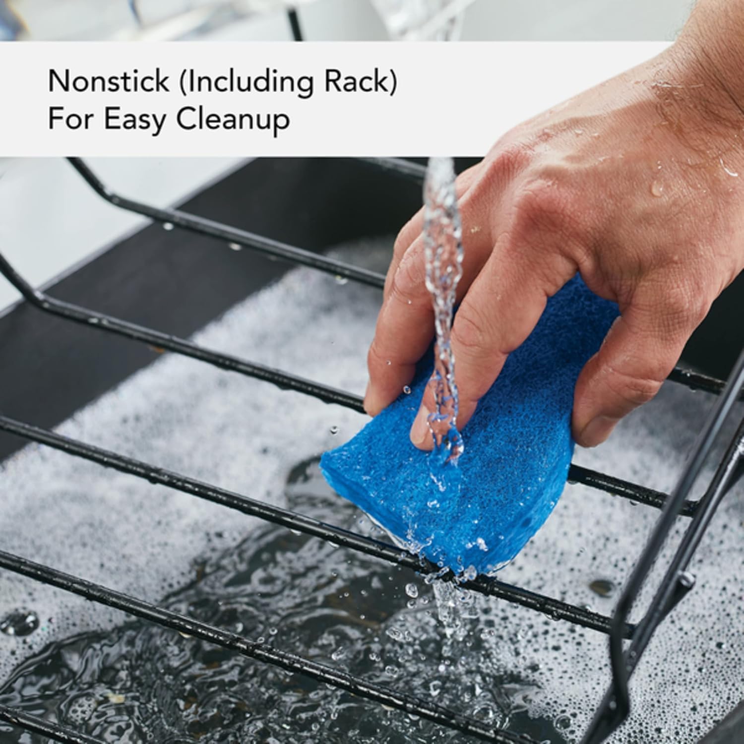 - EFFORTLESS FOOD RELEASE: Roaster and removable rack have been finished with long-lasting triple layer nonstick for easy food release