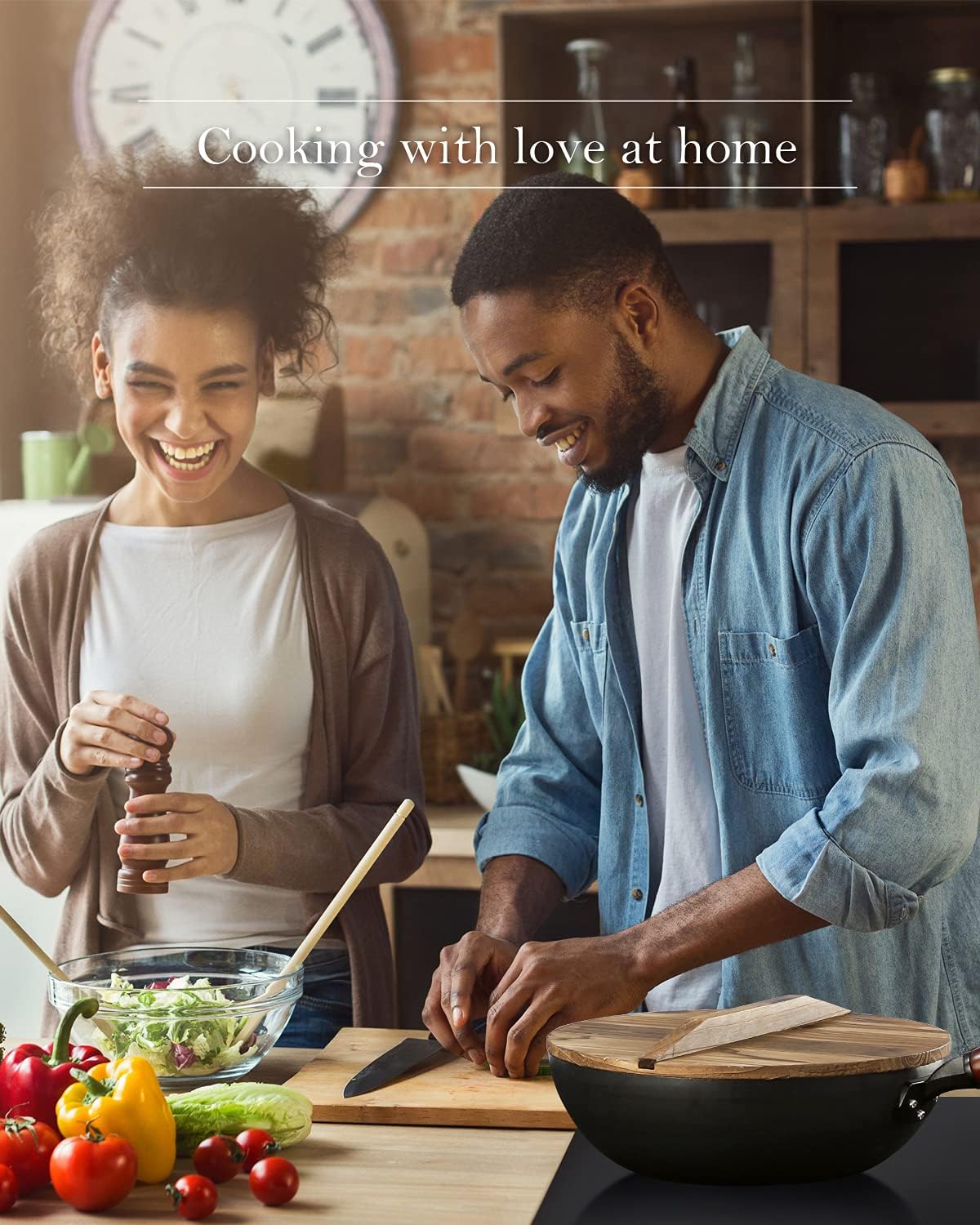 • MUlTI-PURPOSE WOK SET: The wok, crafted from carbon steel, boasts exceptional heat conduction and durability, perfect for creating authentic Chinese cuisine. It is also versatile, suitable for cooking a wide variety of ingredients and adaptable to numerous cooking methods. This helps maintain the flavor and nutritional value of your food. So go ahead and give it a try!