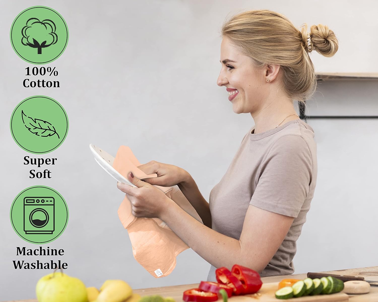 RUVANTI Flour Sack Towels 12 Pack 28 x 28 Inches, Ring Spun 100% Cotton Dish Towel, Machine Washable, Absorbent - Flour Sack Kitchen Towels for Drying and Cleaning - Peach