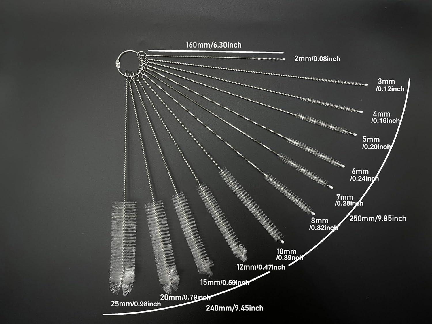 • MULTIPLE SIZE - This set of 12 straw brushes with diameter of 2 mm-25 mm, and the nylon bristle lengths of extra long size: 6.5 inches, 9.5 inches and 10 inches . Great for clean your reusabel stainless straws and silicone straw on Tumbler, Sippy Cup, water Bottles with straw, Tervis, CamelBak, Hydroflasks, Yeti, Starbucks Cup and others.