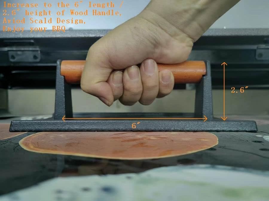 - 【LESS TIME COOKING, MORE TIME EATING】: Got people coming over, and want perfect, consistent bacon, quick? The Firsgrill signature iron grill press is 8.3-inch*4.3-inch and presses down on your favorite thin meats to make them cook faster and more evenly.