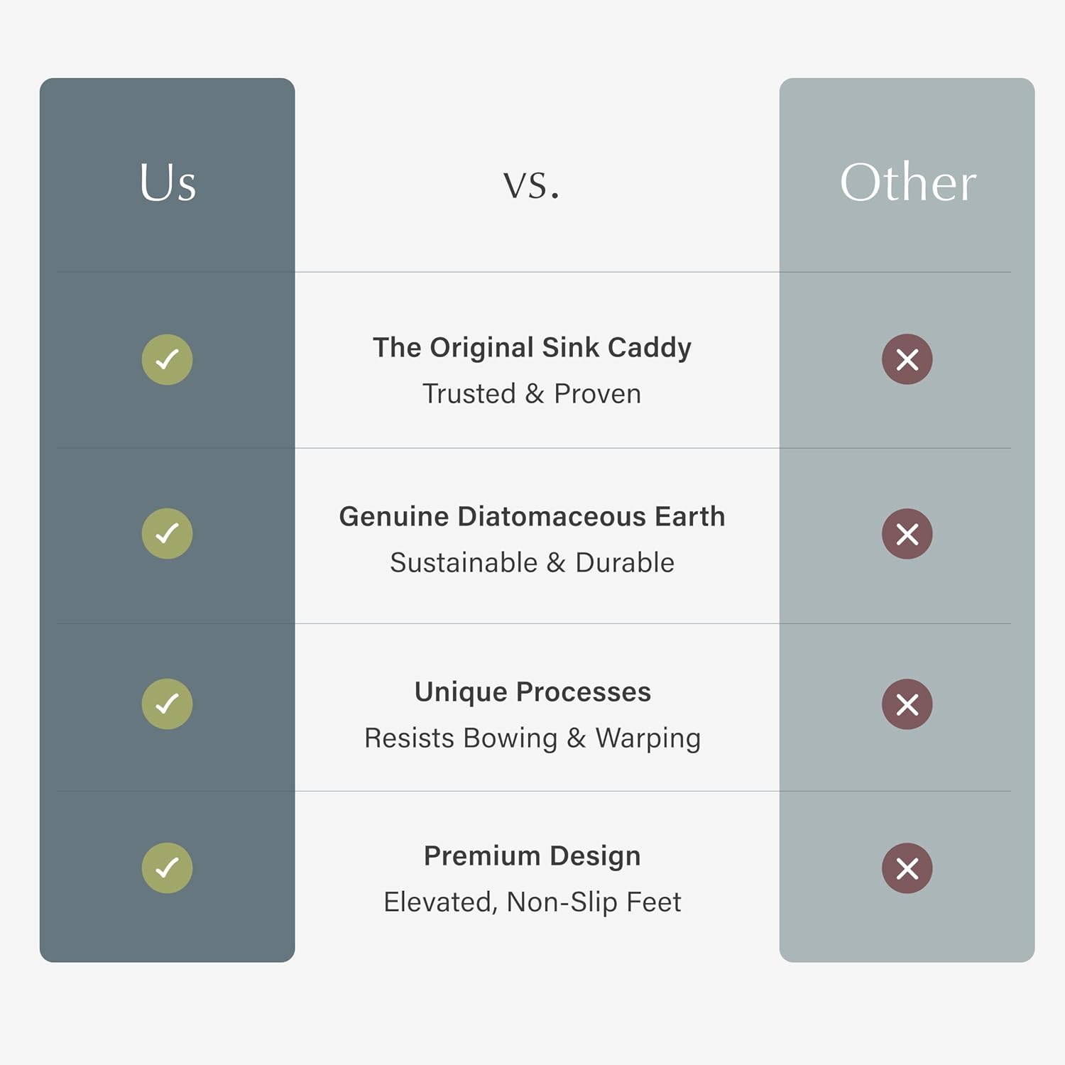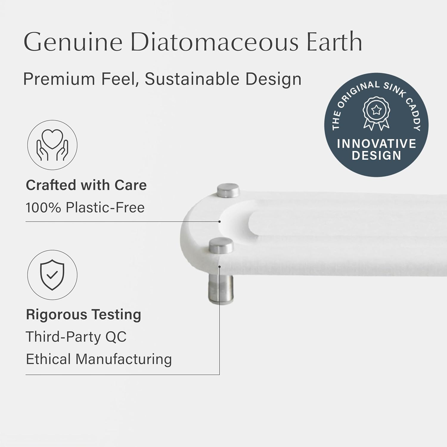 - DRIES QUICKLY - Our sink tray is made from Diatomaceous earth, which holds up to 150% of its weight in water and contains millions of pores, causing moisture to evaporate rapidly. By eliminating the moist environment where gunk thrives, it helps prevent odors, ensuring a clean and hygienic sink area.